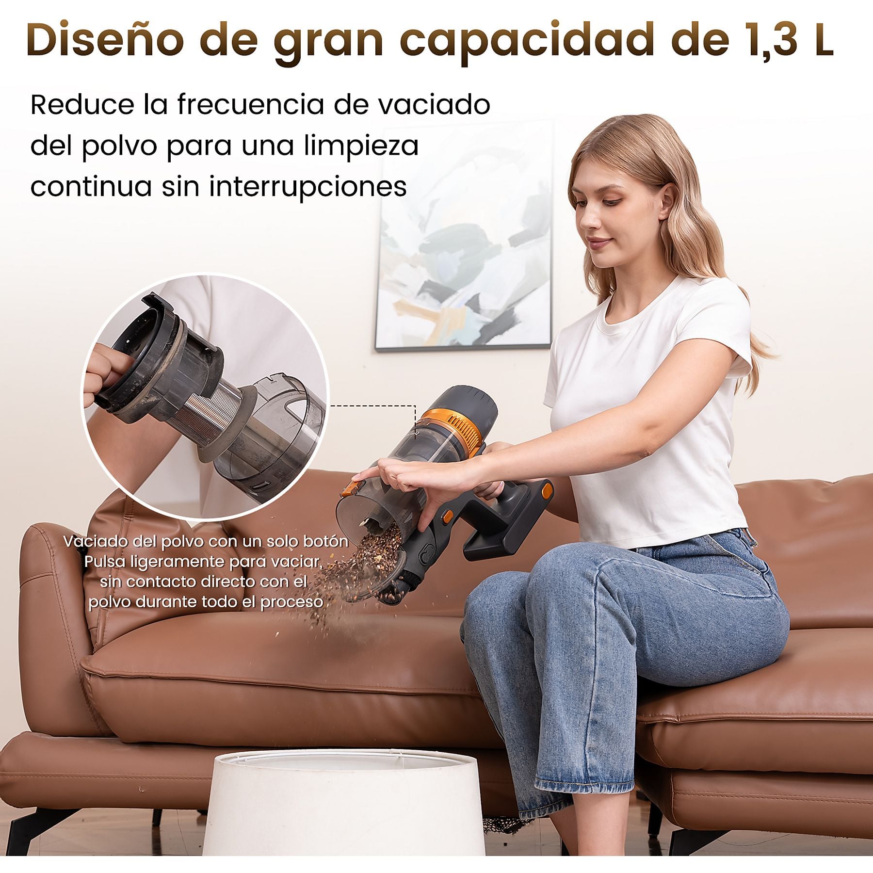 Capacidad del Depósito: 1.3 litros (extra grande) con vaciado de un solo botón.