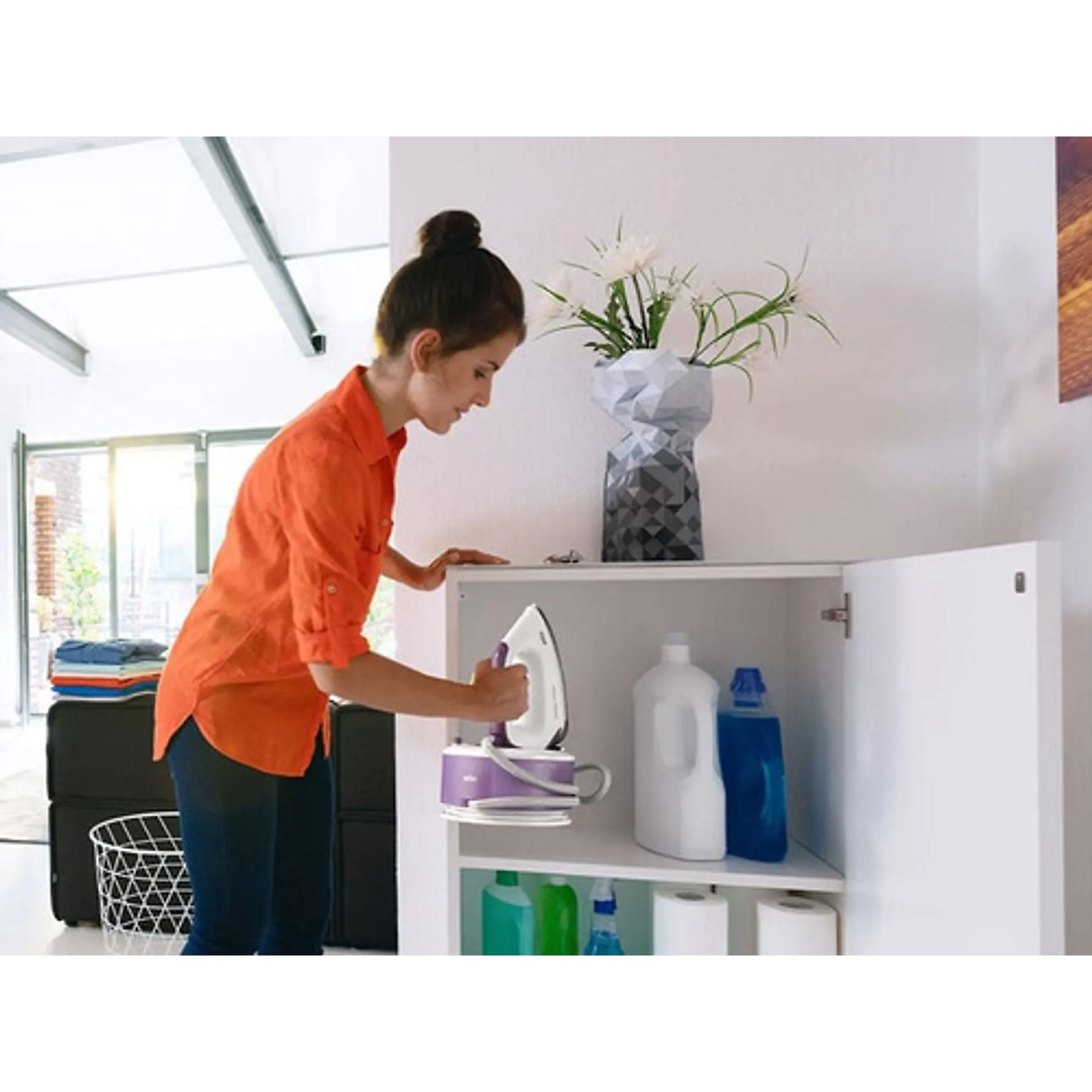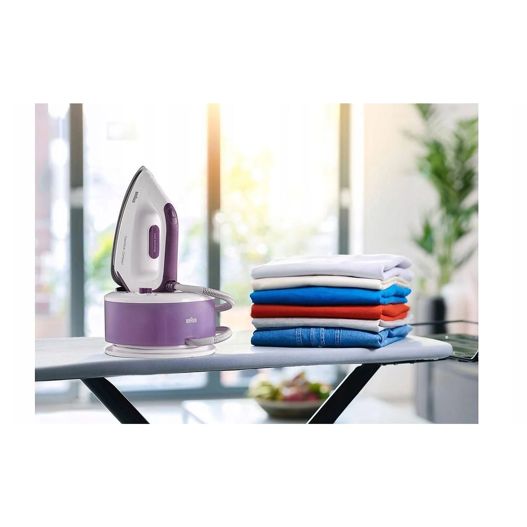 El Braun CareStyle Compact IS2144 VI demuestra que el tamaño no está reñido con el rendimiento. Diseñado para ocupar el mínimo espacio en tu armario, este dispositivo ofrece un flujo de vapor constante que atraviesa las fibras más gruesas, permitiendo sesiones de planchado rápidas, cómodas y con resultados de tintorería.
