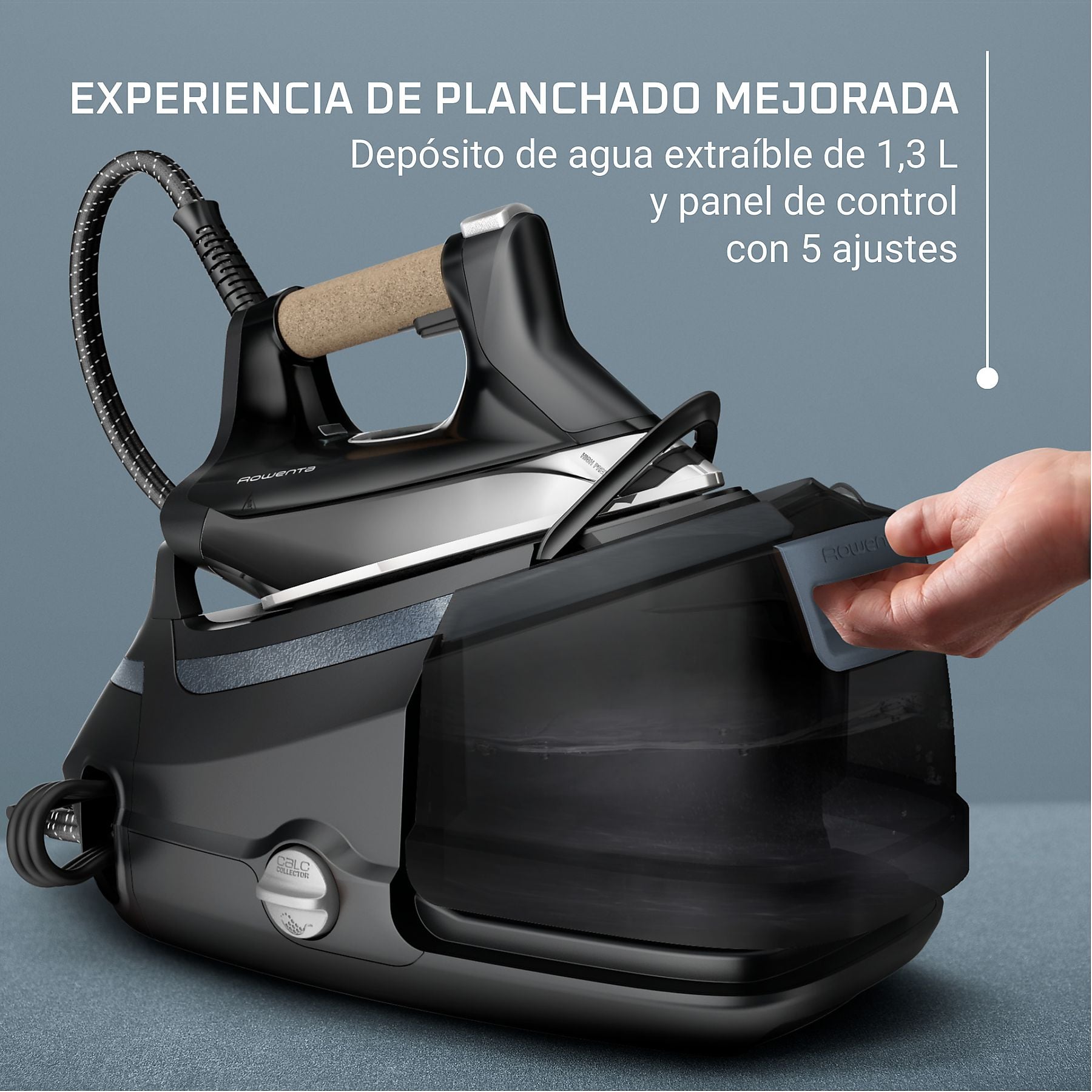 En el apartado de sostenibilidad, el Eco Steam Pro destaca por estar fabricado con un 42% de materiales reciclados y ser reciclable en un 85%. Su modo Eco ultraeficiente permite ahorrar hasta un 50% de energía en comparación con el modo Boost, limitando el impacto ecológico sin sacrificar el rendimiento. Completan el equipo un depósito de 1,3 L extraíble, un panel de control con 5 ajustes intuitivos y un sistema antical de alta eficiencia que asegura una vida útil prolongada, respaldada por el compromiso de reparabilidad de 15 años de Rowenta.