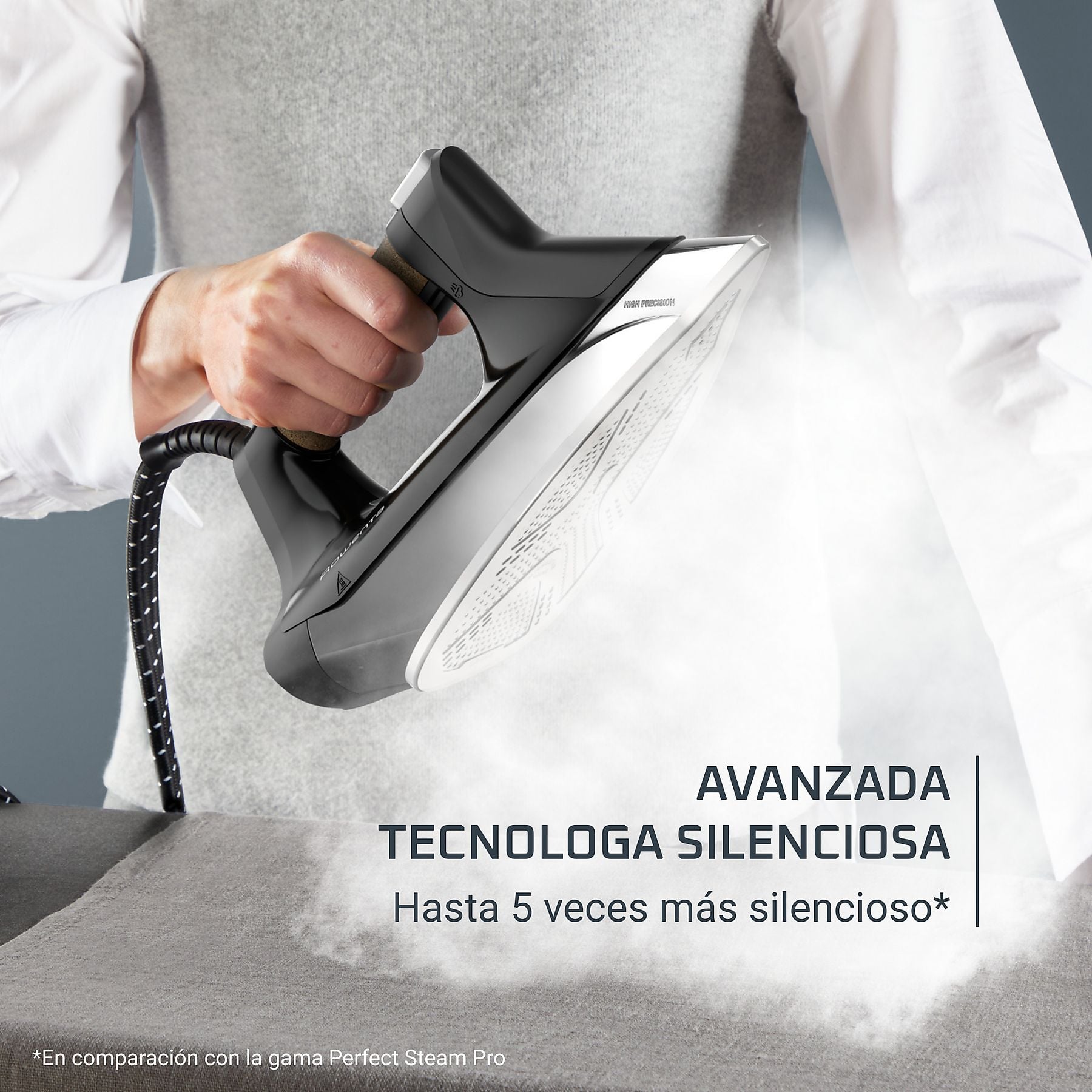 La joya tecnológica de este modelo es su suela patentada Microsteam 400 HD 3D Laser, que ofrece la mejor distribución de vapor del mercado. Gracias a sus 400 microagujeros activos y su acabado láser resistente a los arañazos, maximiza la eficiencia en cada pasada. Además, Rowenta ha integrado una avanzada tecnología silenciosa que lo hace hasta 5 veces más silencioso que gamas anteriores, permitiéndote planchar cómodamente mientras escuchas música o ves la televisión.