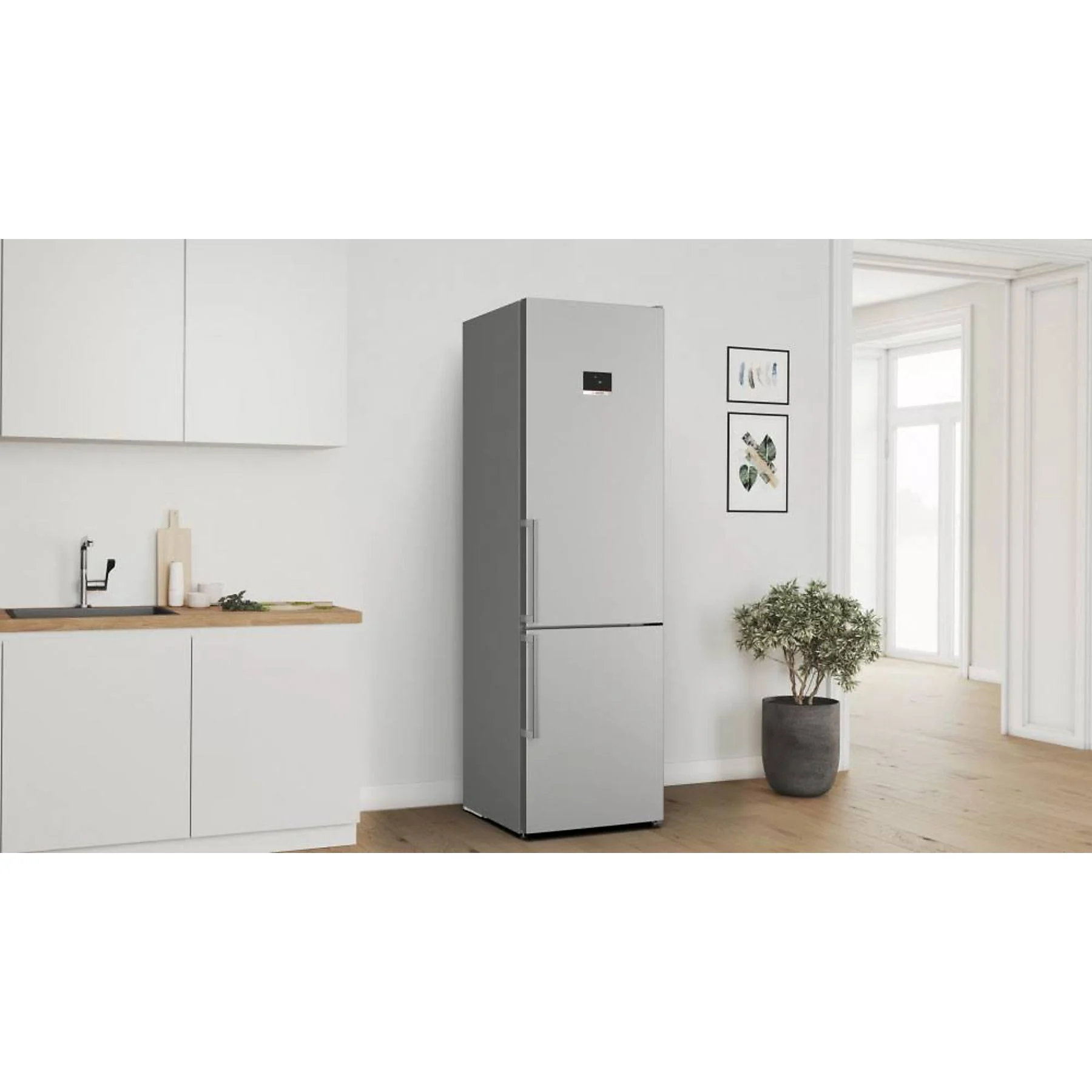 El Bosch KGN397ICT es un exponente de la ingeniería alemana fabricado en Europa, diseñado para quienes buscan una gestión inteligente de los alimentos frescos. Con una altura de 203 cm y un acabado en acero inoxidable con recubrimiento antihuellas, este modelo combina una estética impecable con un rendimiento energético de primer nivel gracias a su tecnología Inverter.