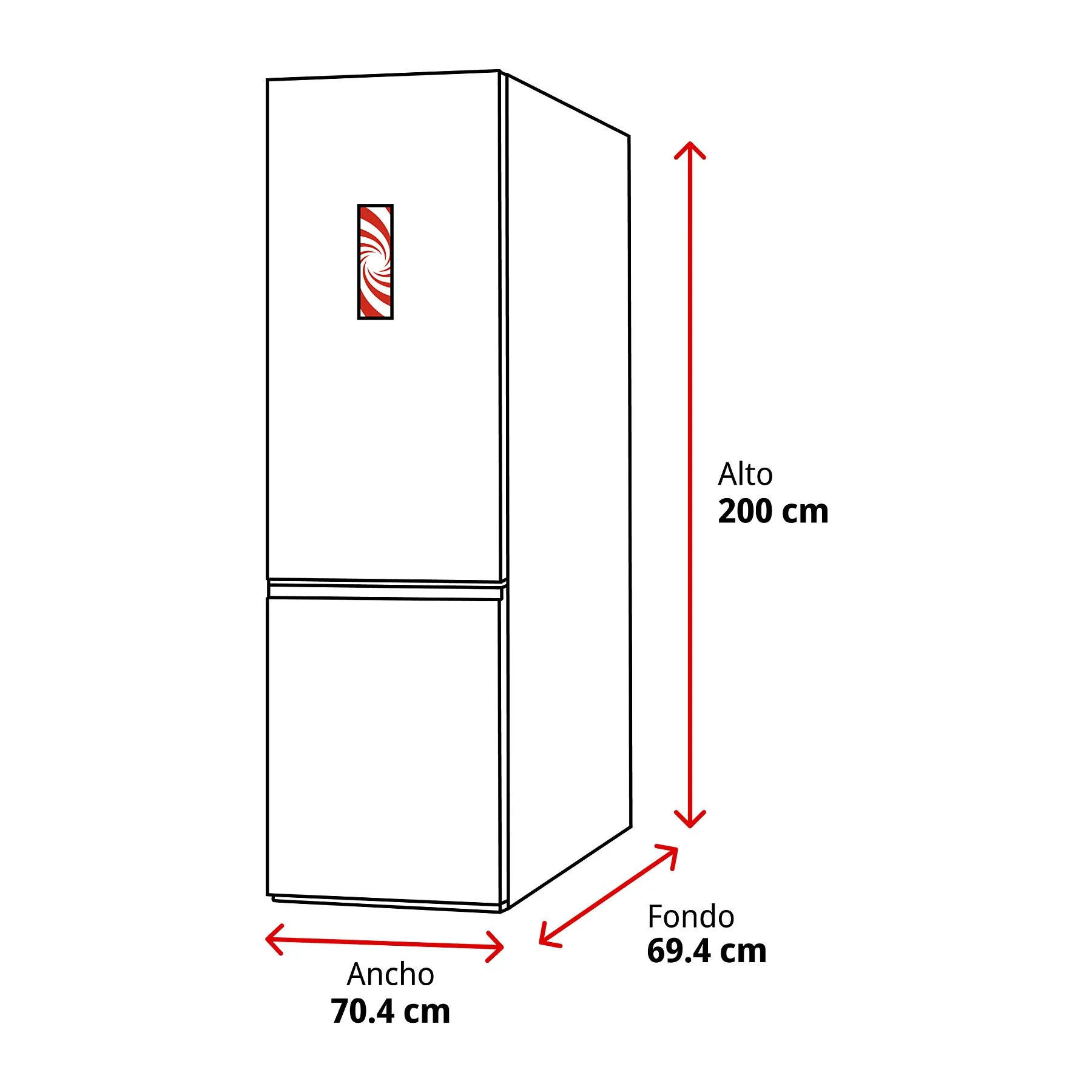 • Dimensiones: 70.4 cm de ancho x 200 cm de alto x 69.4 cm de profundidad.