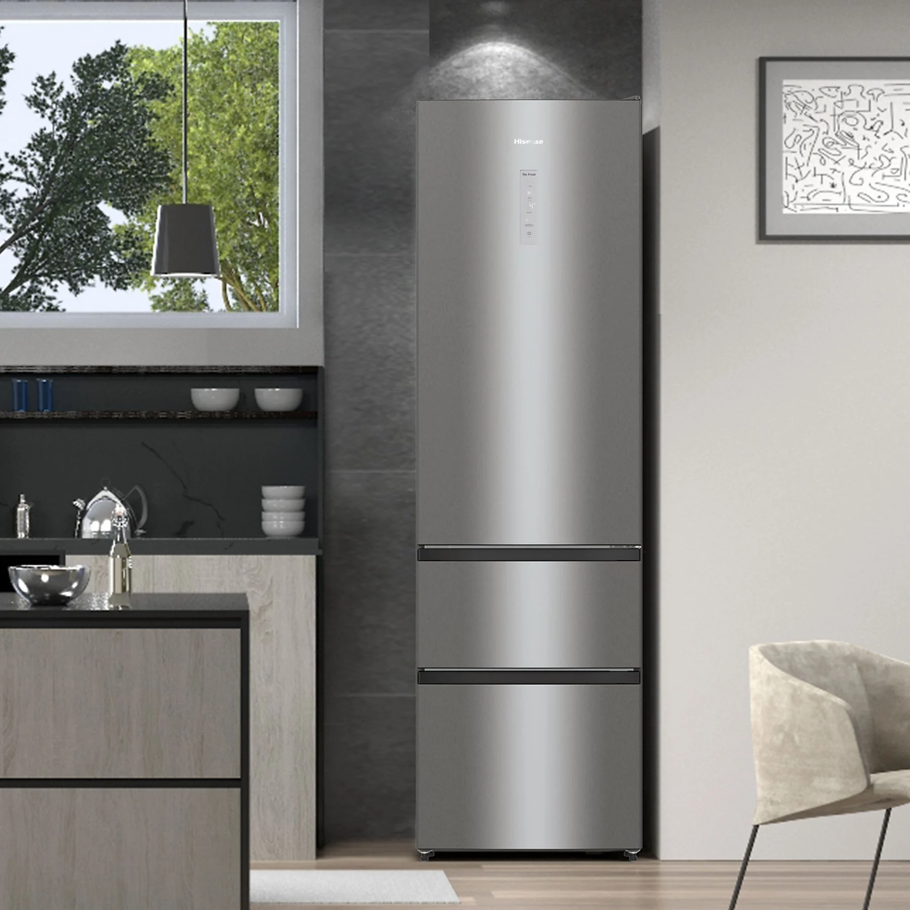 Frigorífico Combi Hisense RM469N4ACD | 200 cm, 368 L, Congelador Convertible, Total No Frost – Inox
