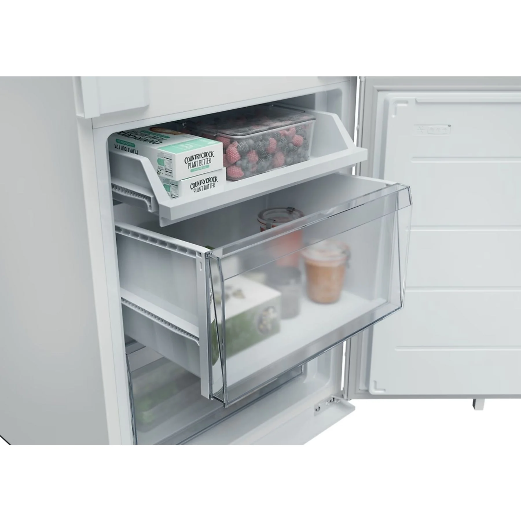Frigorífico combi integrable con tecnología Total No Frost que elimina la escarcha y reduce bacterias hasta en un 94%. Un modelo de 177,2 cm diseñado para ocultarse tras el mobiliario de tu cocina, ofreciendo eficiencia Clase E y control inteligente.