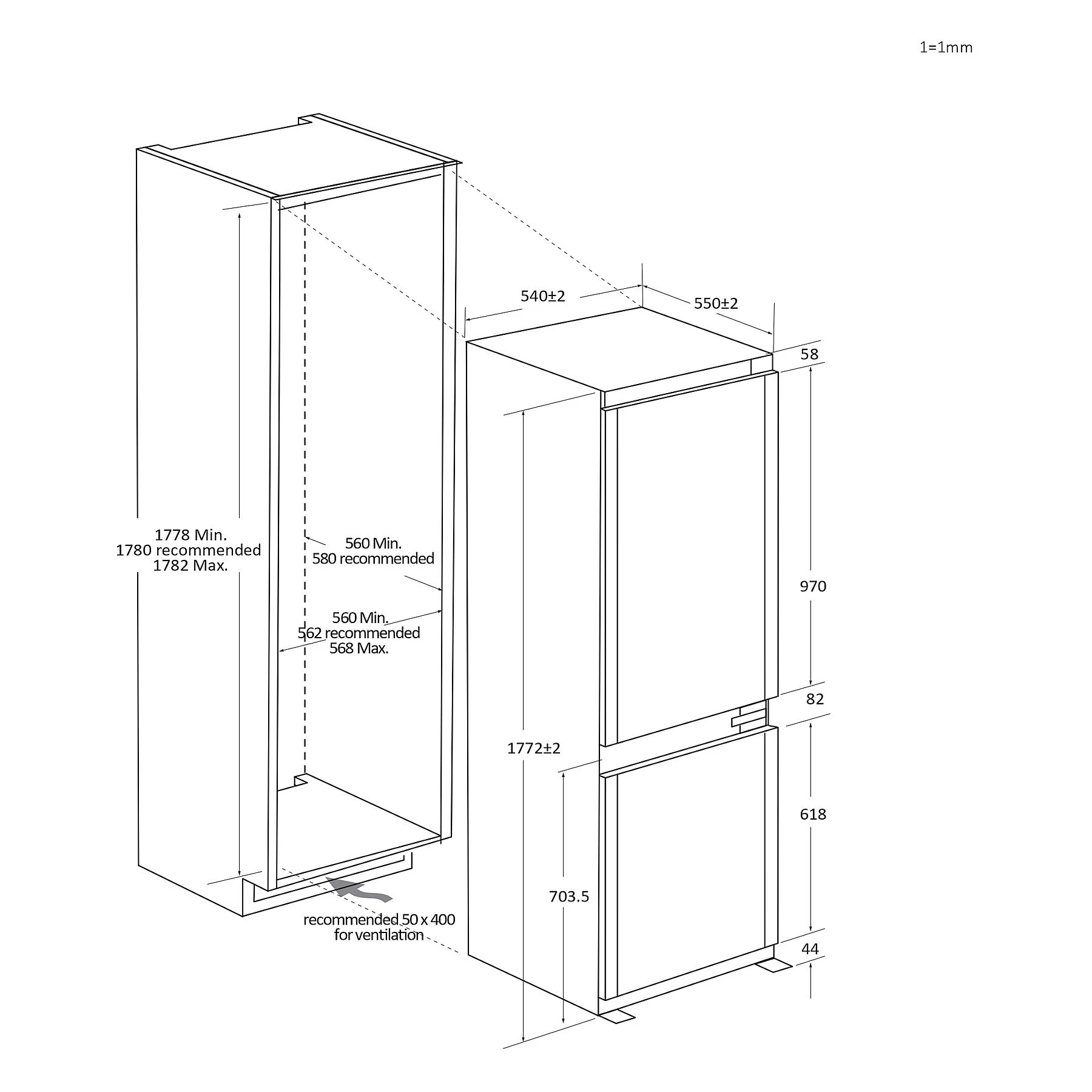 Medidas de Encastre: 54 cm de ancho y 55 cm de profundidad, medidas estándar que se adaptan a la mayoría de nichos de cocina europeos.