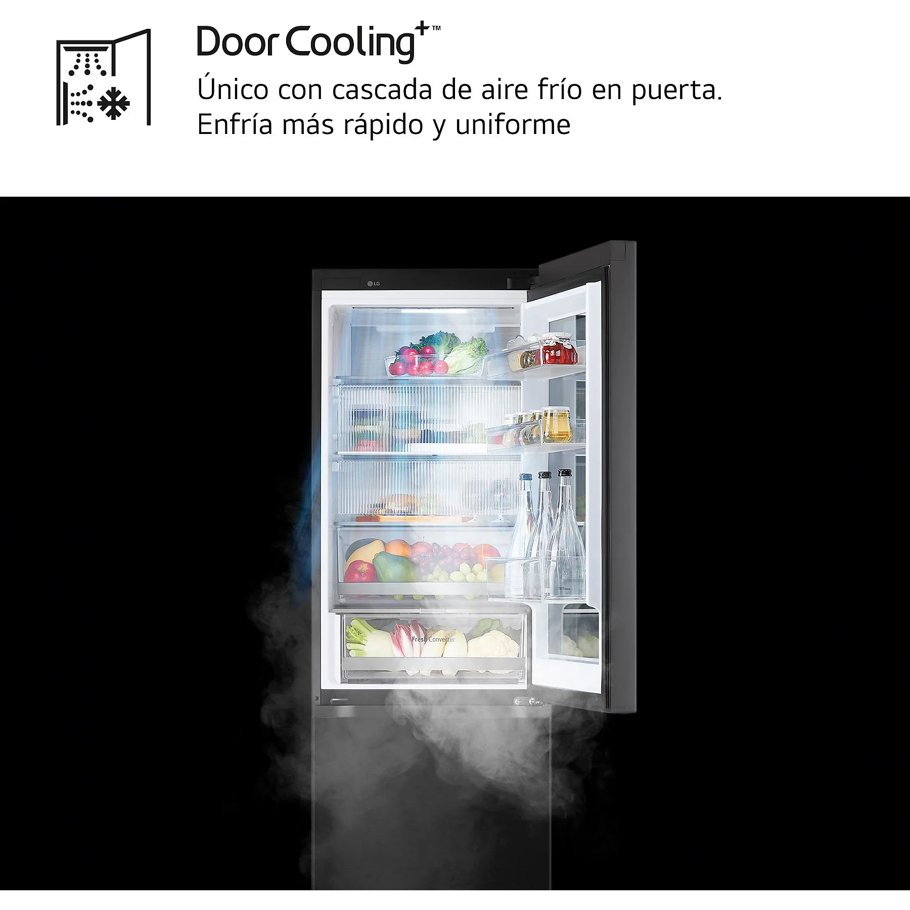 DoorCooling+™: Incorpora una salida de aire en forma de cascada en la parte superior frontal. Este sistema enfría de manera más rápida y uniforme, especialmente en los estantes de la puerta, reduciendo el choque térmico al abrir el frigorífico.