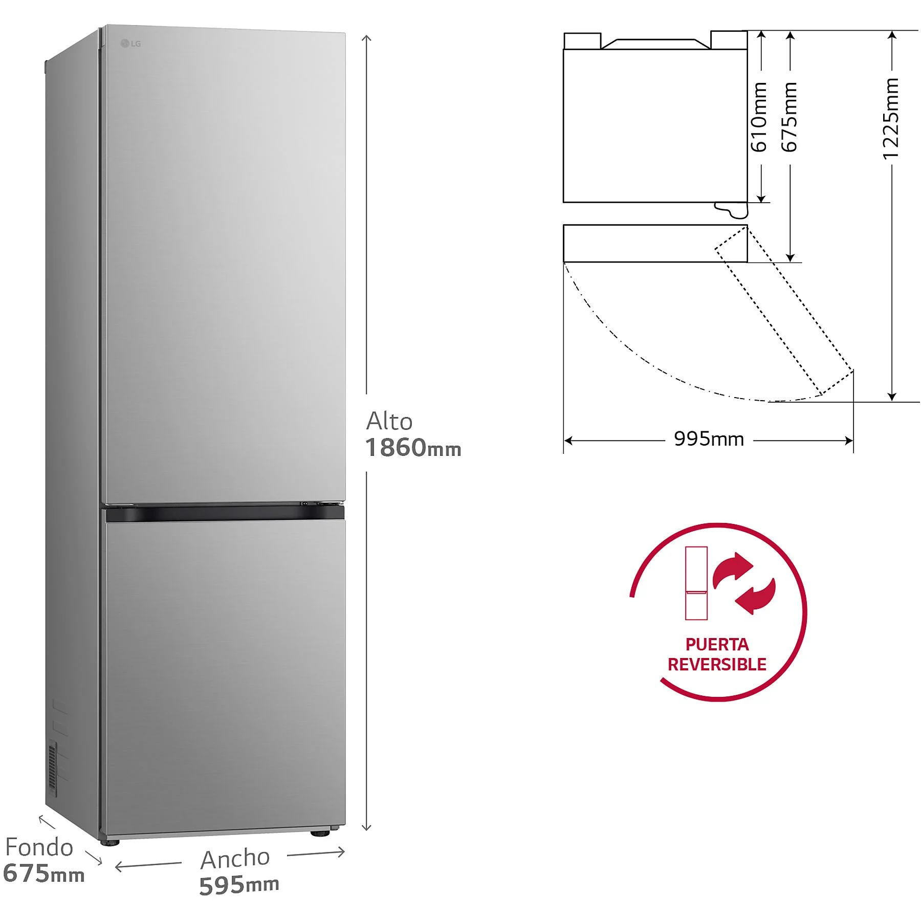 Frigorífico Combi LG GBV3100CPY | DoorCooling+™, FRESHBalancer™, 186 cm, 344 L – Inox Antihuellas