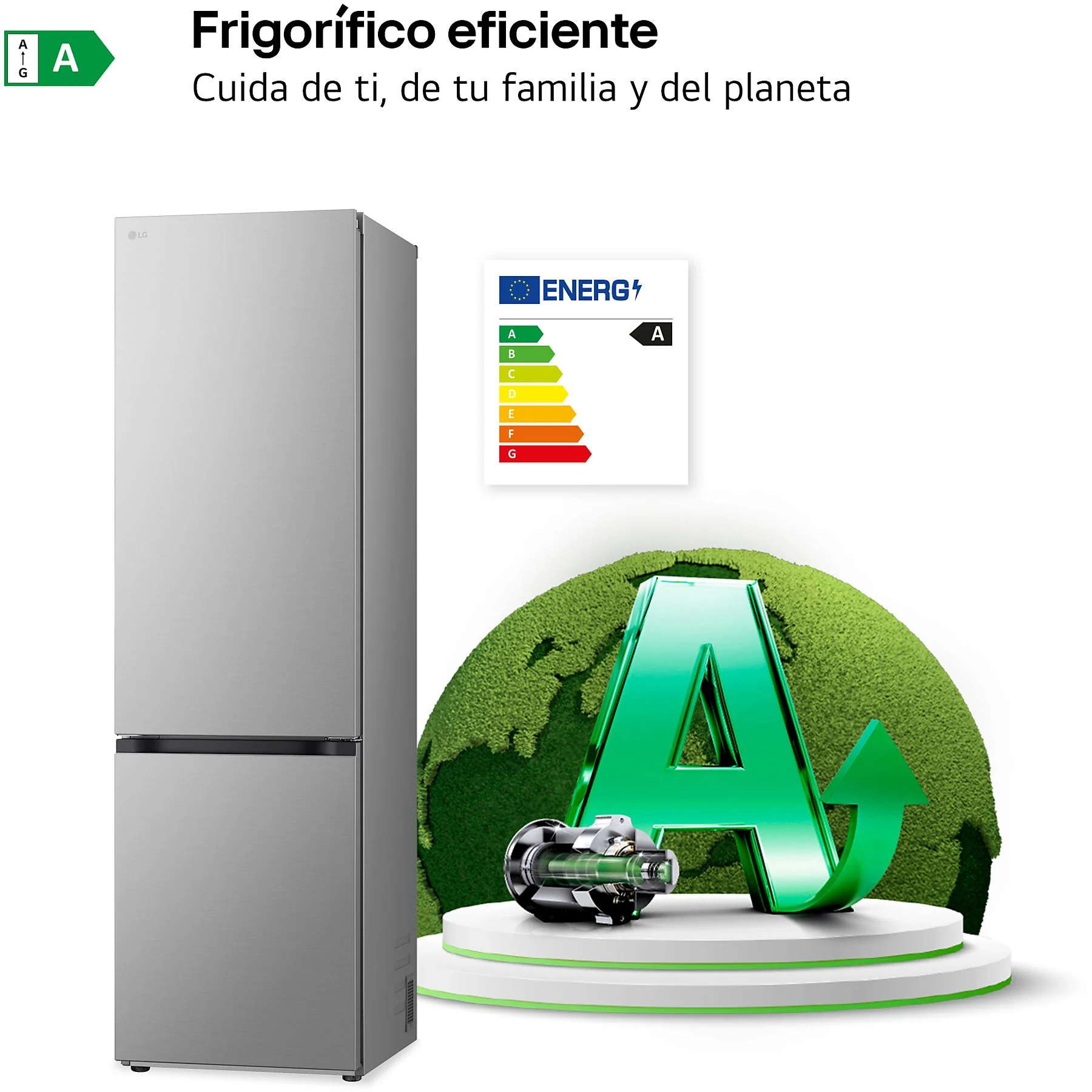 El LG GBV5240APY destaca por su imponente presencia de 203 cm y su sofisticado acabado en Inox Antihuellas. Este frigorífico combi no solo maximiza el espacio vertical para ofrecer 387 litros de capacidad, sino que incorpora las tecnologías de refrigeración más avanzadas de LG para garantizar que tus alimentos mantengan su frescura, textura y sabor original durante mucho más tiempo.