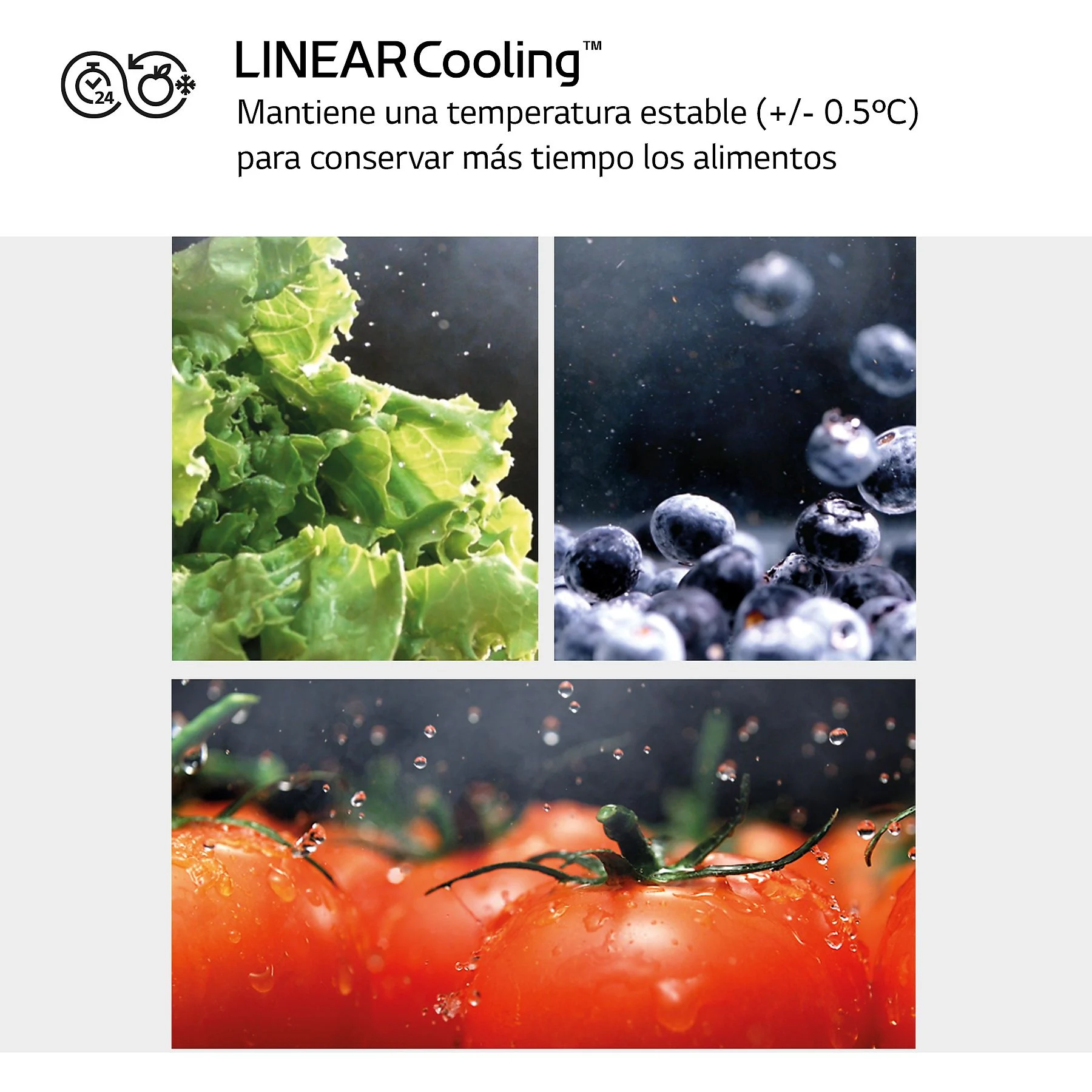 • LINEARCooling™: Mantiene una temperatura estable con fluctuaciones mínimas de apenas ±0.5 ºC. Esta estabilidad térmica es la clave para evitar que los alimentos se deterioren prematuramente y para potenciar su sabor natural.