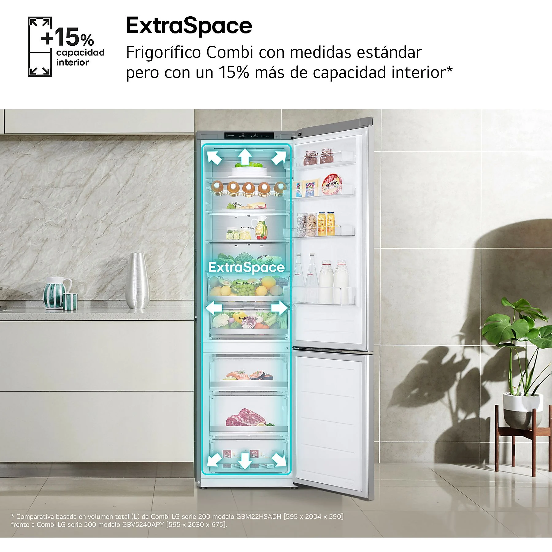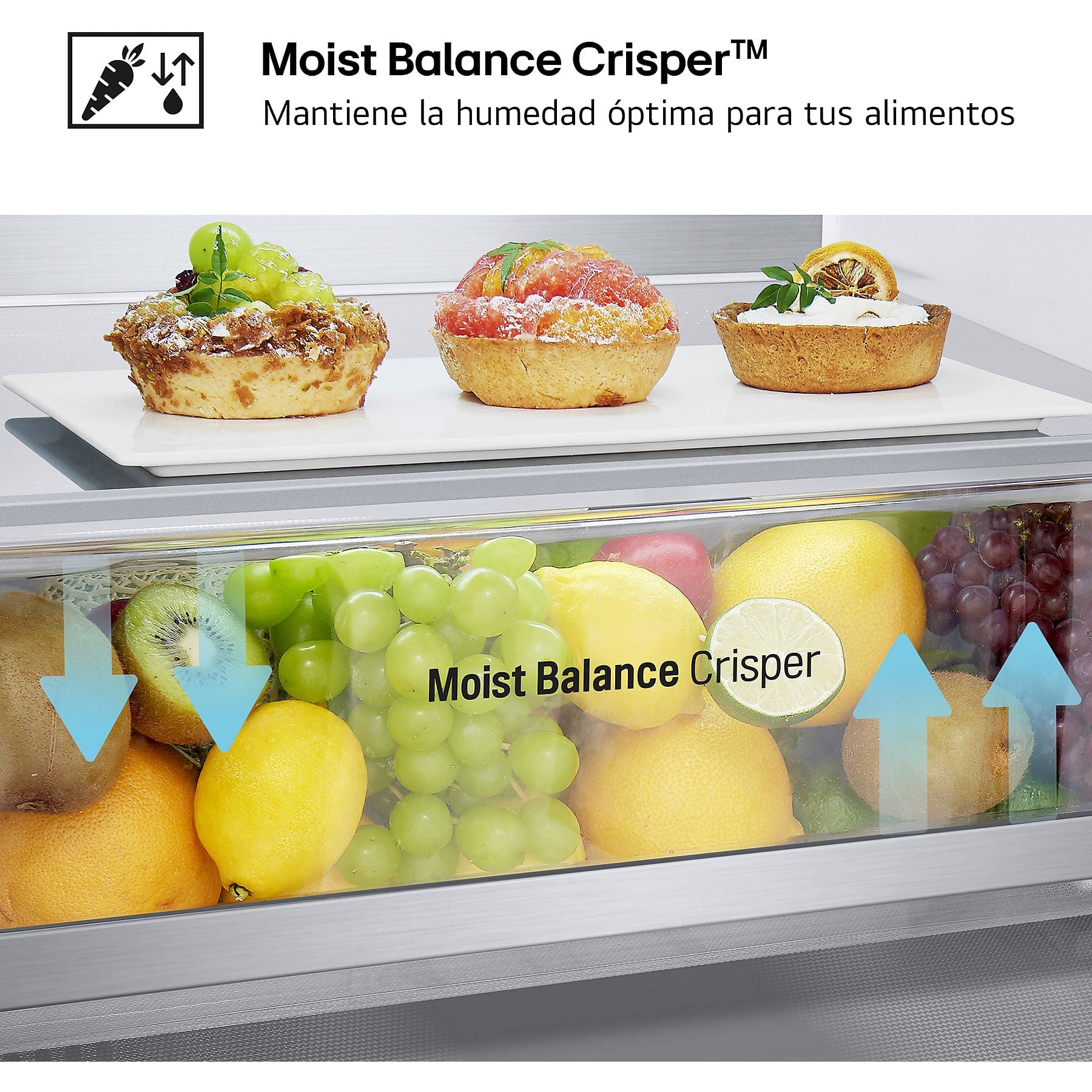 • Fresh Balancer con Magic Crisper: Cajón específico con selector de humedad que optimiza el ambiente interior para frutas o verduras, ayudando a que conserven su frescura y nutrientes por más días.