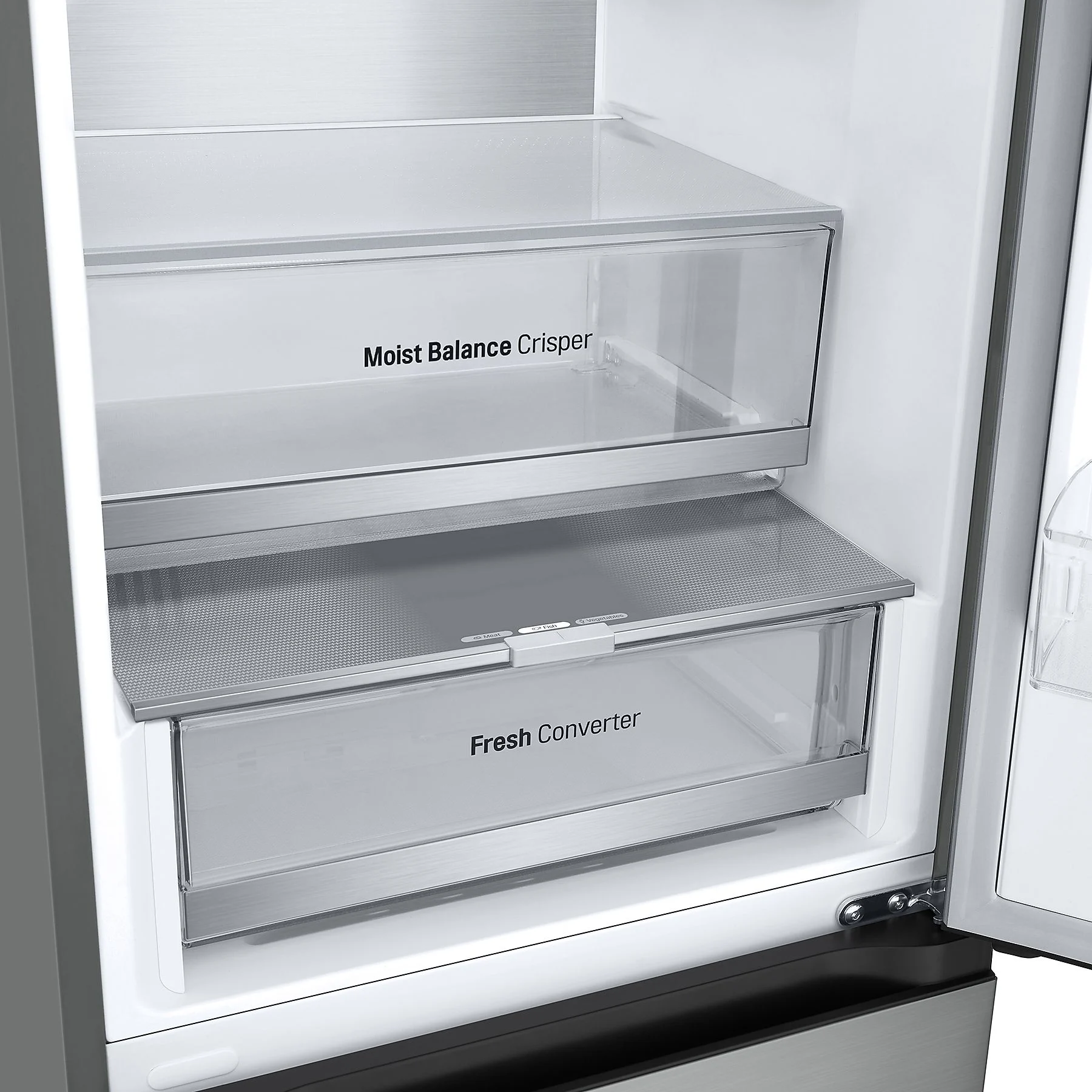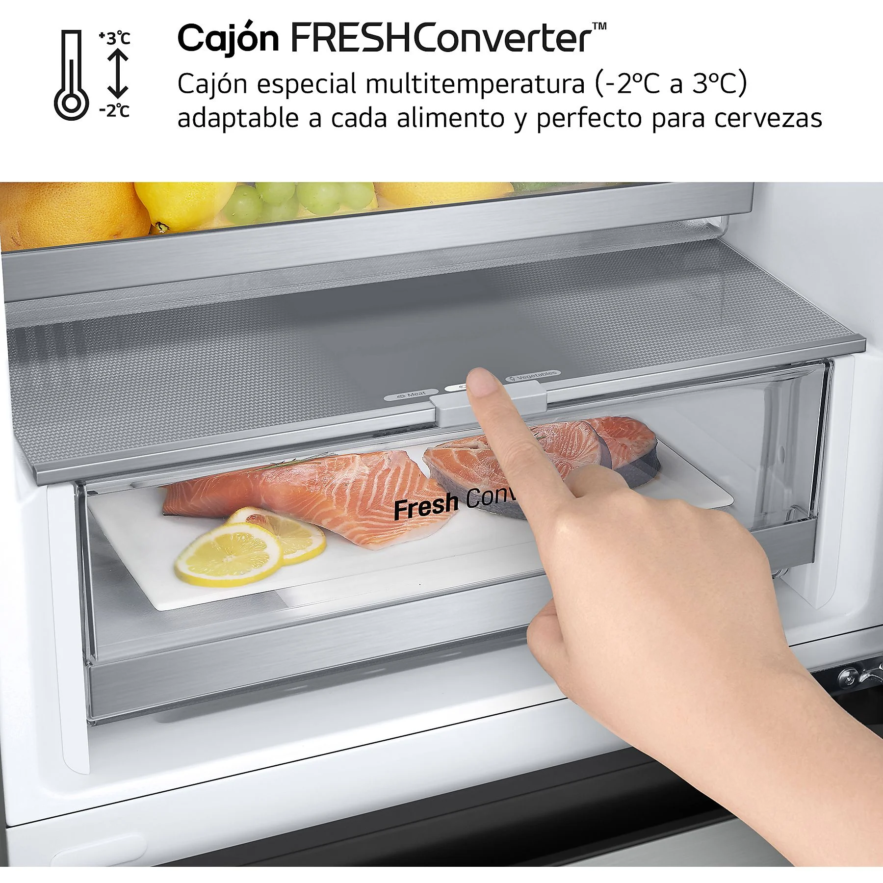• FRESHConverter™: Un compartimento versátil que permite adaptar la temperatura (entre -2ºC y 3ºC) según el tipo de alimento que desees almacenar: carnes, pescados, verduras o incluso para mantener tus bebidas en el punto de frío perfecto.