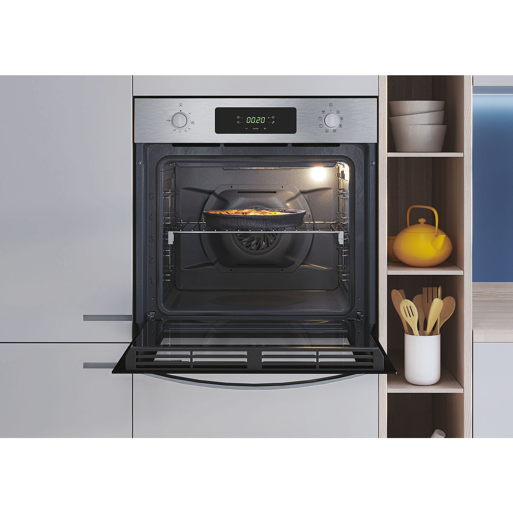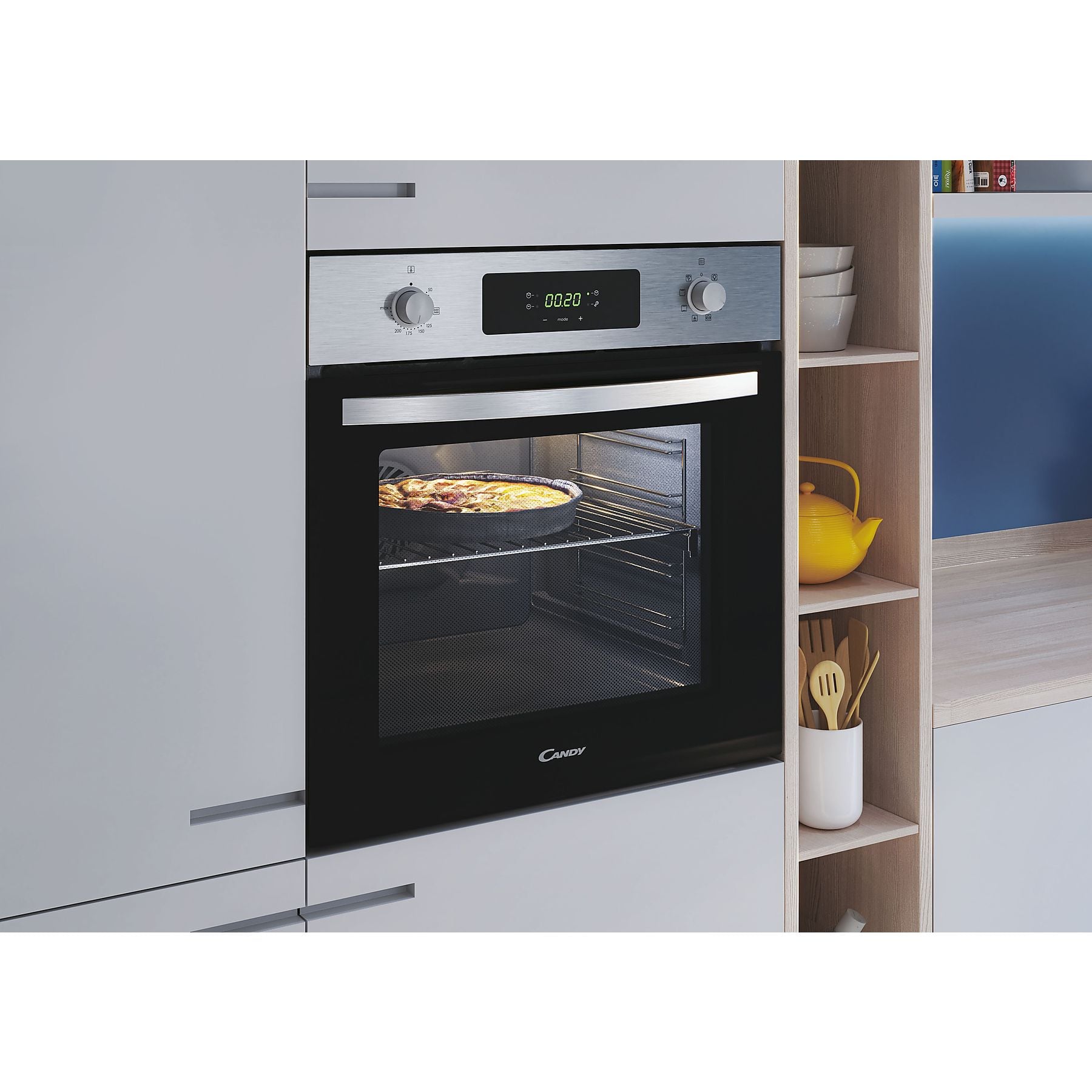 El Candy Idea FIDC X625 L destaca como el modelo más eficiente de su gama, alcanzando una clasificación energética Clase A+ que garantiza un ahorro real en cada factura eléctrica. Con una generosa capacidad de 70 litros, este horno integrable combina un robusto exterior en acero inoxidable con un interior tecnológicamente avanzado. Su panel de control es una mezcla perfecta de ergonomía y modernidad, incorporando mandos ocultables y un intuitivo Display con timer touch que facilita la programación de tus recetas.