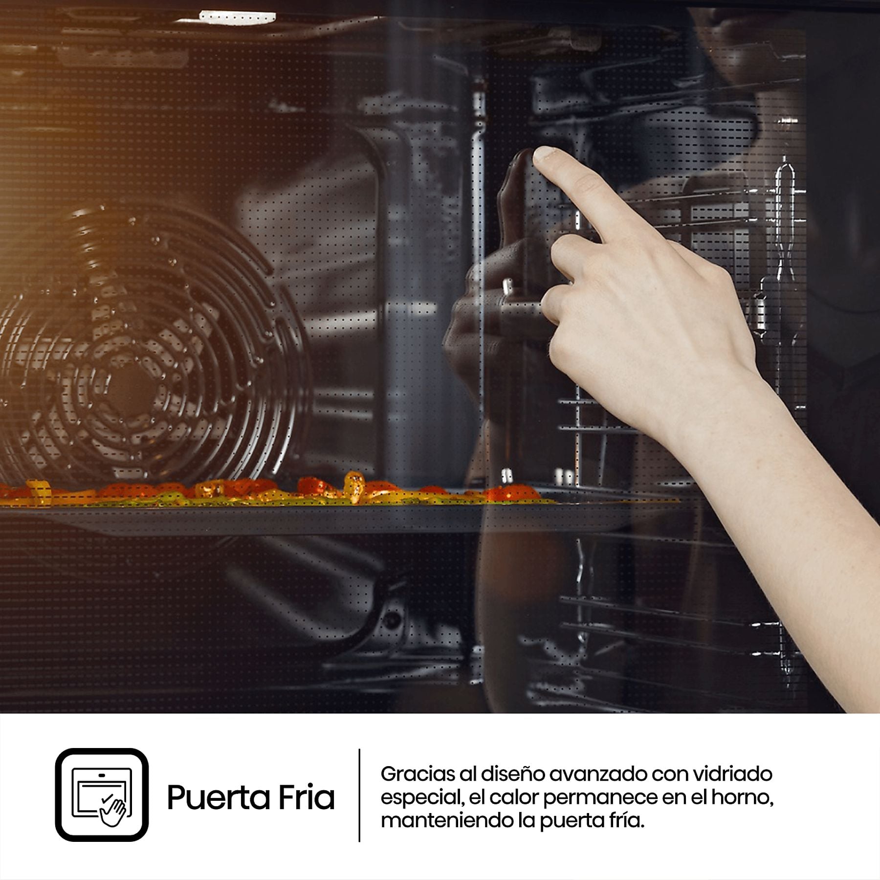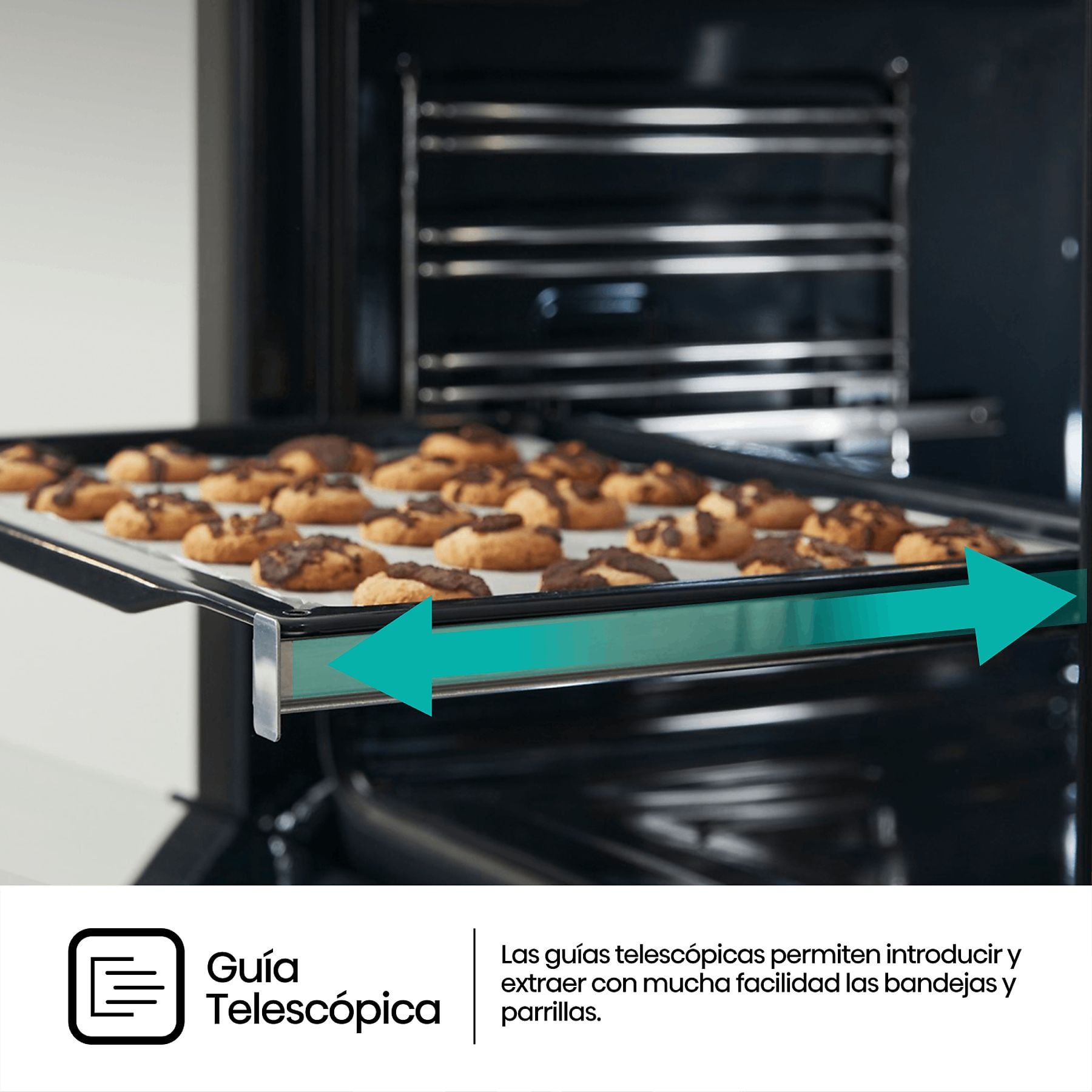 La tecnología de cocción de este modelo destaca por su velocidad y versatilidad. Gracias al Calentamiento Rápido, el horno alcanza los 200°C en apenas 5 minutos, ahorrando un 30% de tiempo respecto a modelos convencionales. Para los amantes de la gastronomía, incluye un Modo Pizza capaz de llegar a los 300°C para resultados profesionales, así como la función Air Fry, que permite disfrutar de alimentos crujientes y saludables sin necesidad de utilizar una freidora de aire independiente. Además, su sistema de Cocción por Etapas permite automatizar cambios de temperatura durante el proceso, asegurando que cada receta reciba el tratamiento exacto que necesita.