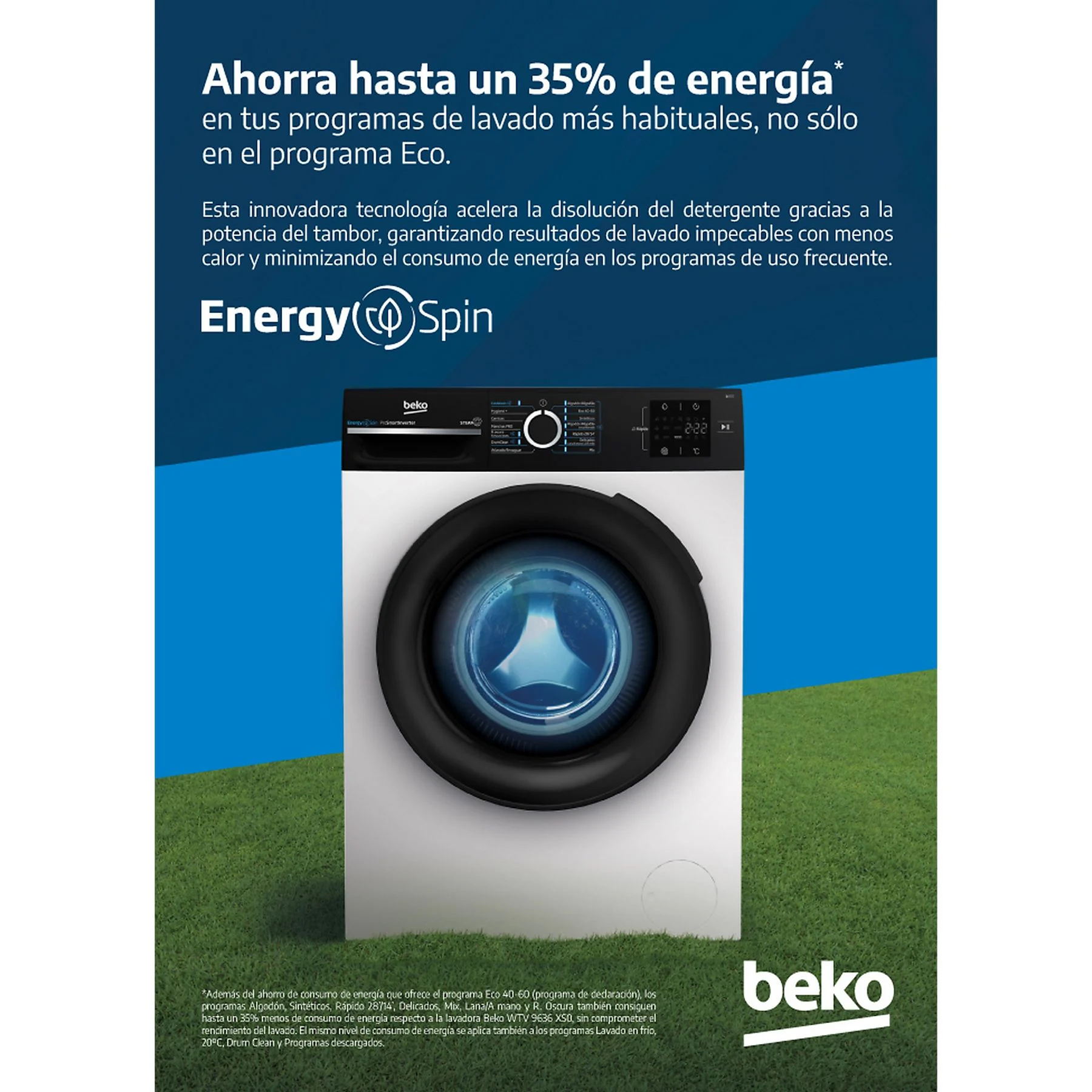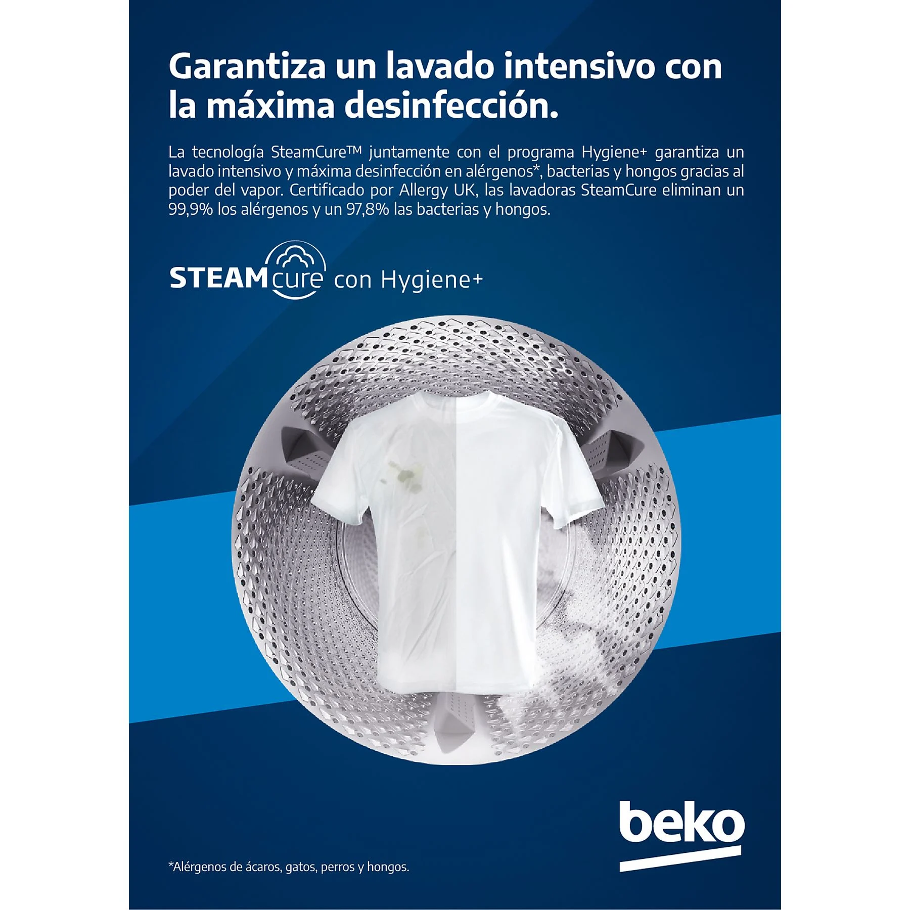 Lavadora Beko Energy Spin BM3WFSU39413 | 9 kg, 1400 rpm, Motor ProSmart™ Inverter, Vapor, Clase A – Blanco