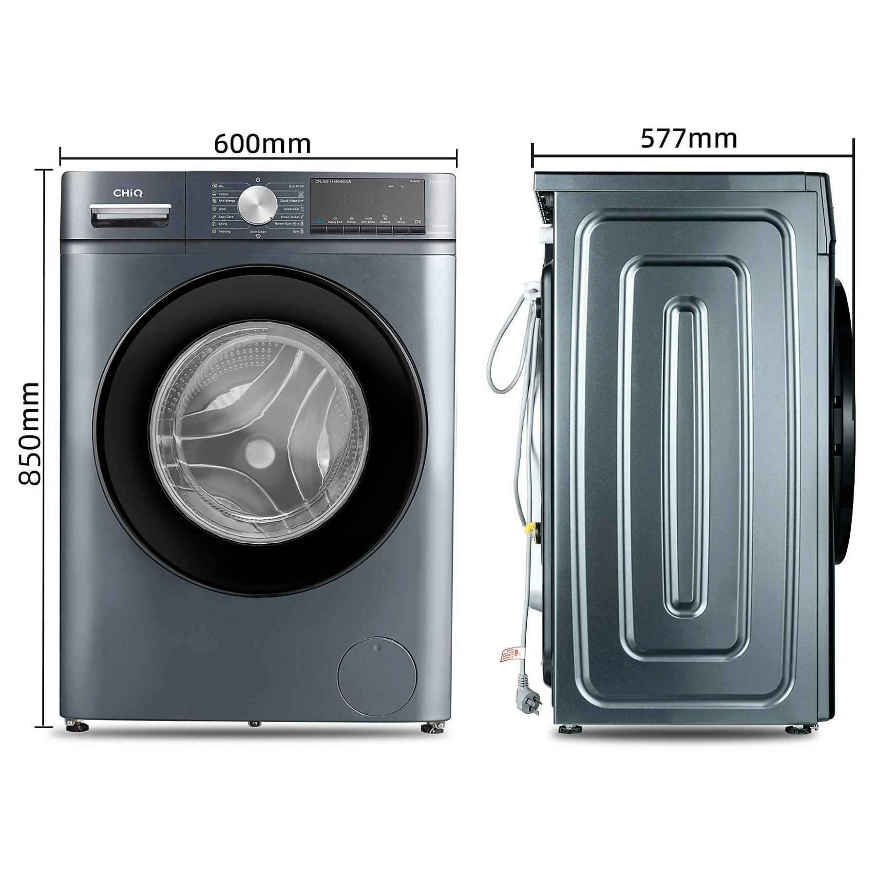La CHiQ Space PRO revoluciona el concepto de carga frontal al ofrecer una capacidad de 10 kg en un cuerpo más estrecho y estilizado. Su acabado en Gris Oscuro (Dark Grey) y su tecnología de vanguardia la convierten en una opción premium para familias que necesitan lavar grandes volúmenes de ropa sin sacrificar espacio en el hogar.