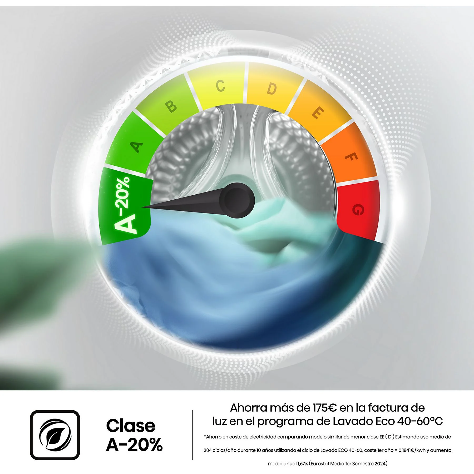 Ahorro Energético Superior: Este modelo va más allá de la máxima clasificación energética, consumiendo un 20% menos de energía que una lavadora Clase A convencional.