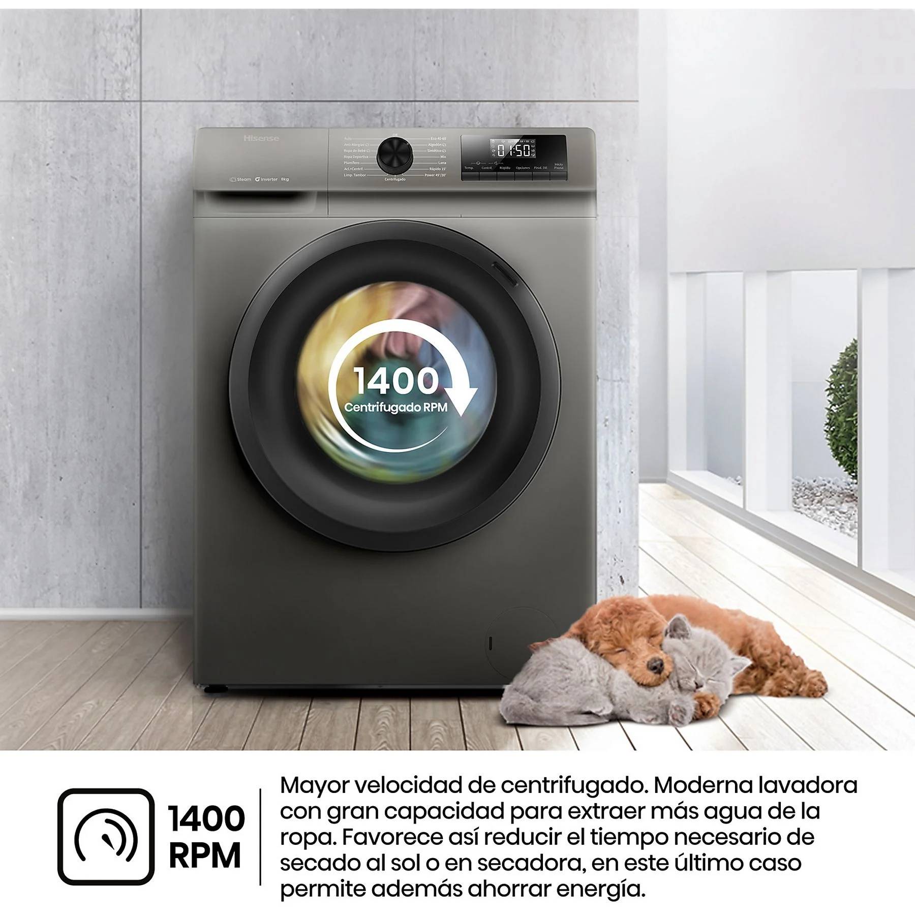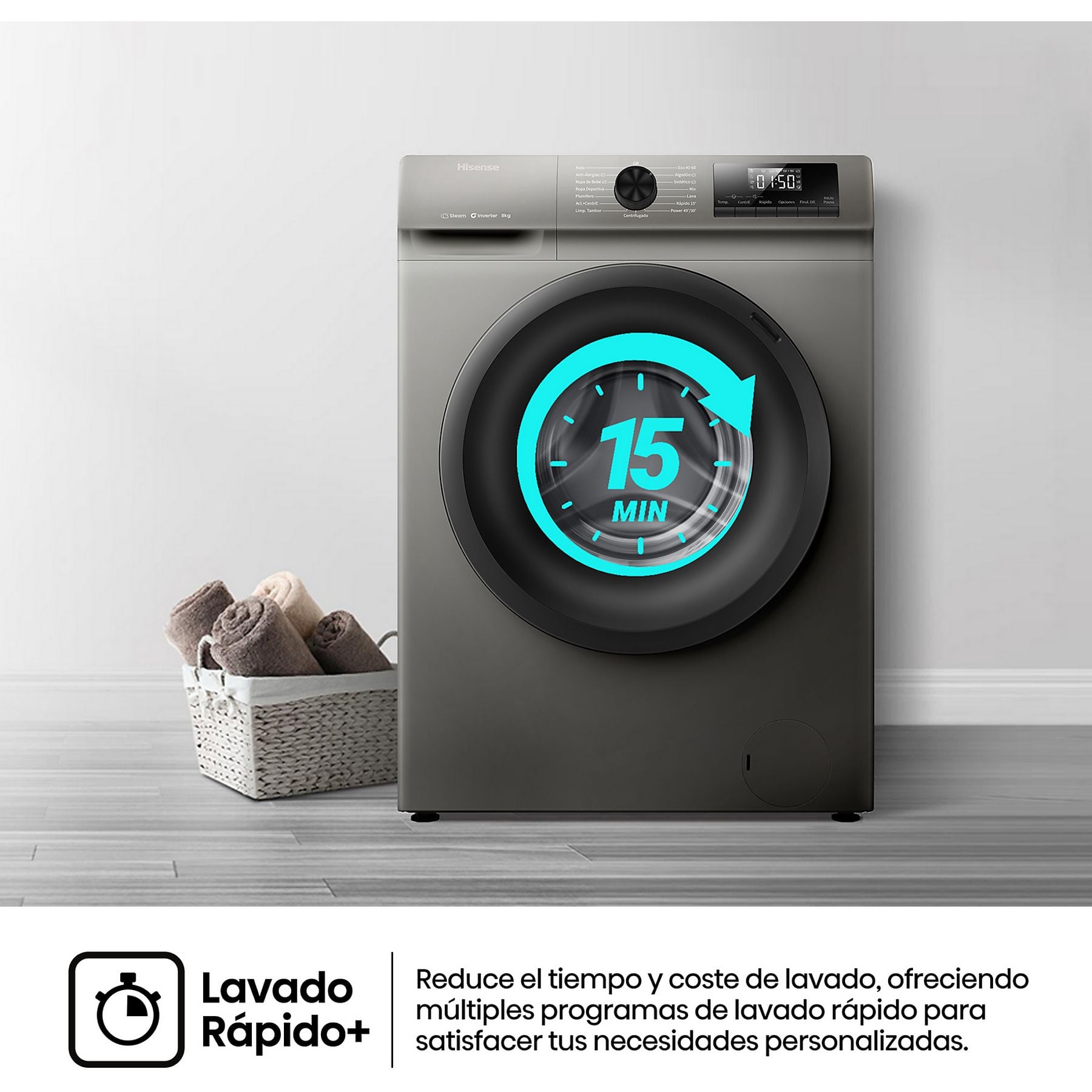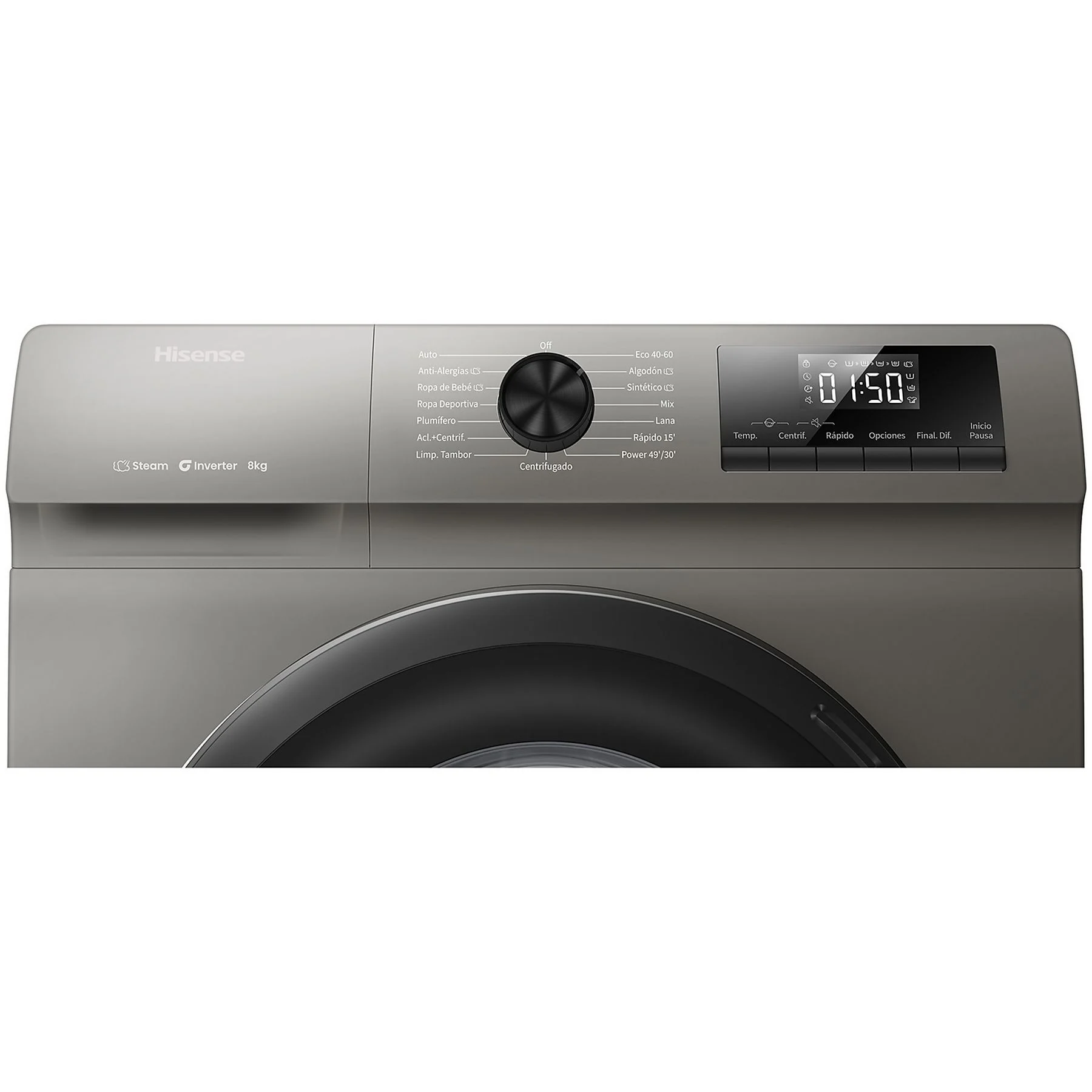 Lavadora Hisense WF1Q8041BT | 8 kg, 1400 rpm, Eficiencia A-20%, Función Vapor – Gris