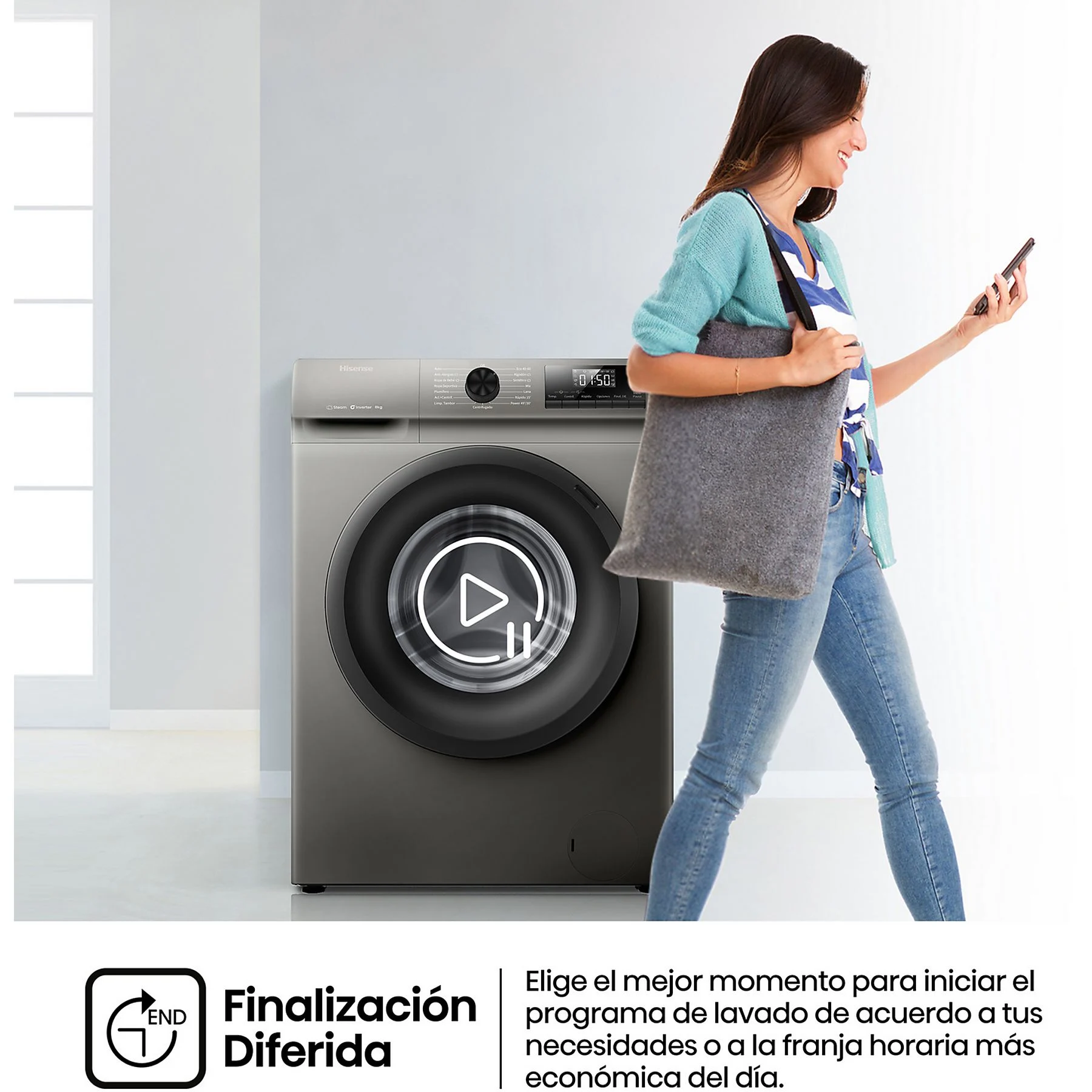 La Hisense WF1Q8041BT es la elección ideal para quienes buscan un diseño moderno y sofisticado sin renunciar a la máxima eficiencia. Su acabado en color gris aporta un toque industrial y elegante a la cocina, mientras que su tecnología interna garantiza un consumo mínimo y un cuidado profesional de cada tejido.