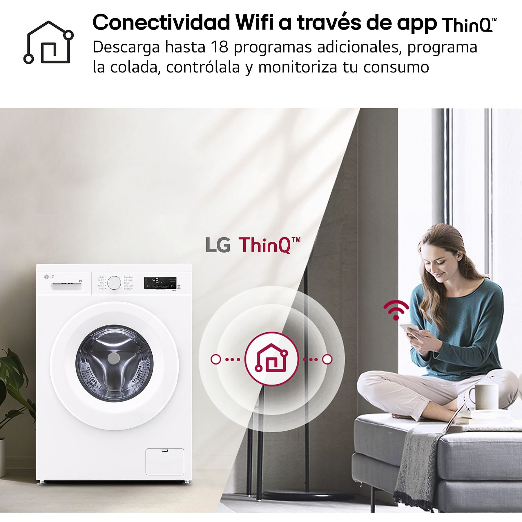 Conectividad Wi-Fi: Controla tu lavadora desde cualquier lugar mediante la app ThinQ™. Puedes iniciar ciclos, monitorizar el progreso o descargar programas adicionales específicos para tus necesidades.