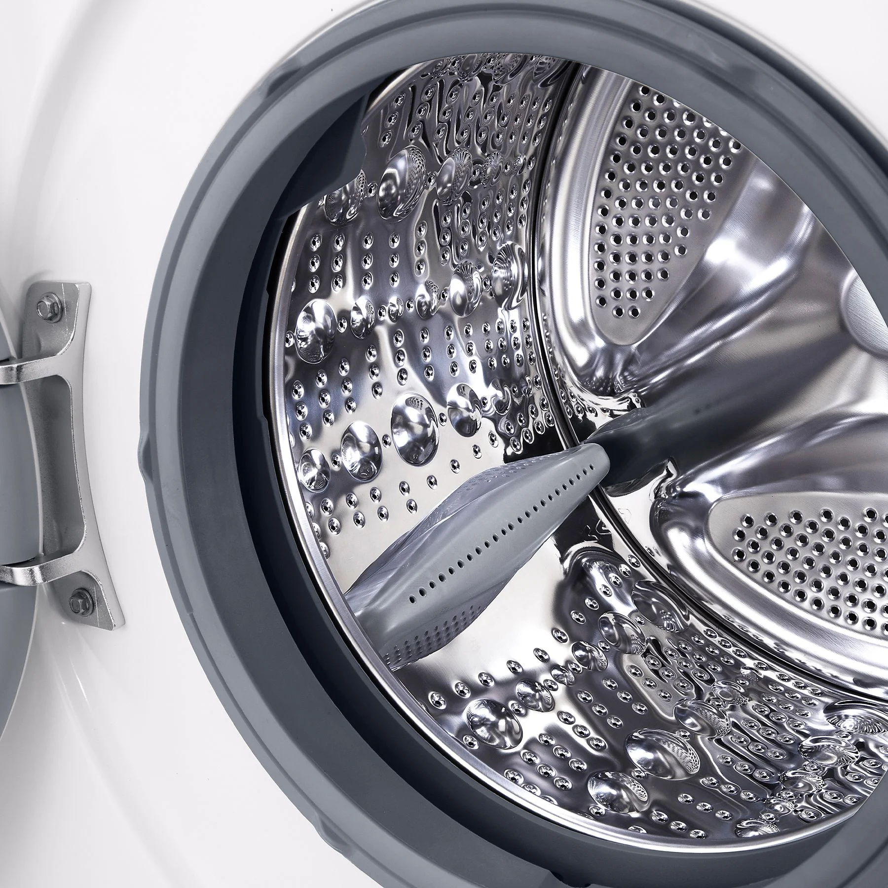 Higiene con Bateadores de Acero: El interior cuenta con 6 palas bateadoras de acero inoxidable. A diferencia de las de plástico, son más higiénicas, duraderas y cuidan las fibras evitando enganchones innecesarios.