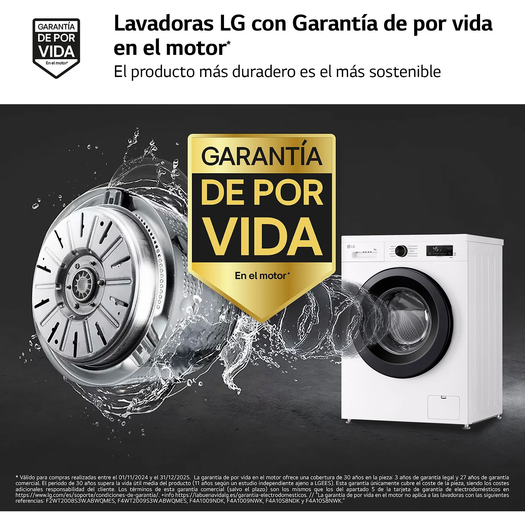 Garantía de por Vida en el Motor: LG ofrece una tranquilidad total con una cobertura de 30 años en el motor Inverter Direct Drive. Al no tener correas ni poleas, el motor es más silencioso, vibra menos y es extremadamente duradero.