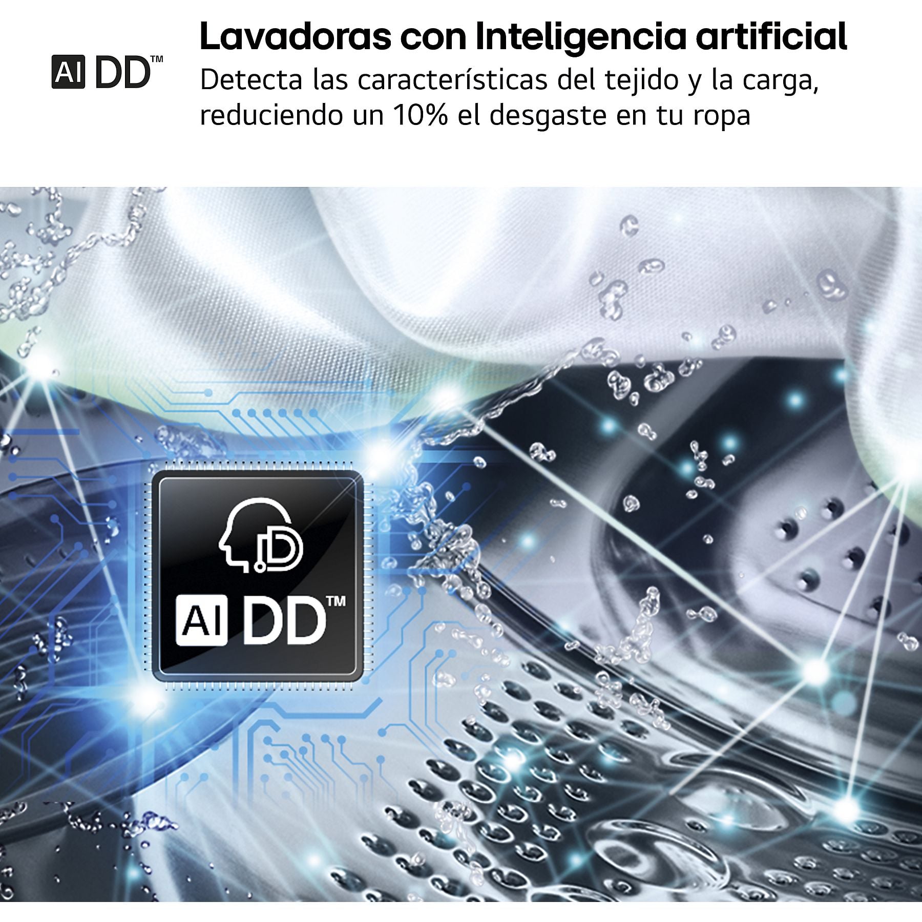 Detección Inteligente: El motor AI Direct Drive™ no solo detecta el peso de la carga, sino también la suavidad del tejido. Basándose en esta información, selecciona automáticamente los movimientos de tambor más adecuados para reducir el desgaste de la ropa en un 18%.