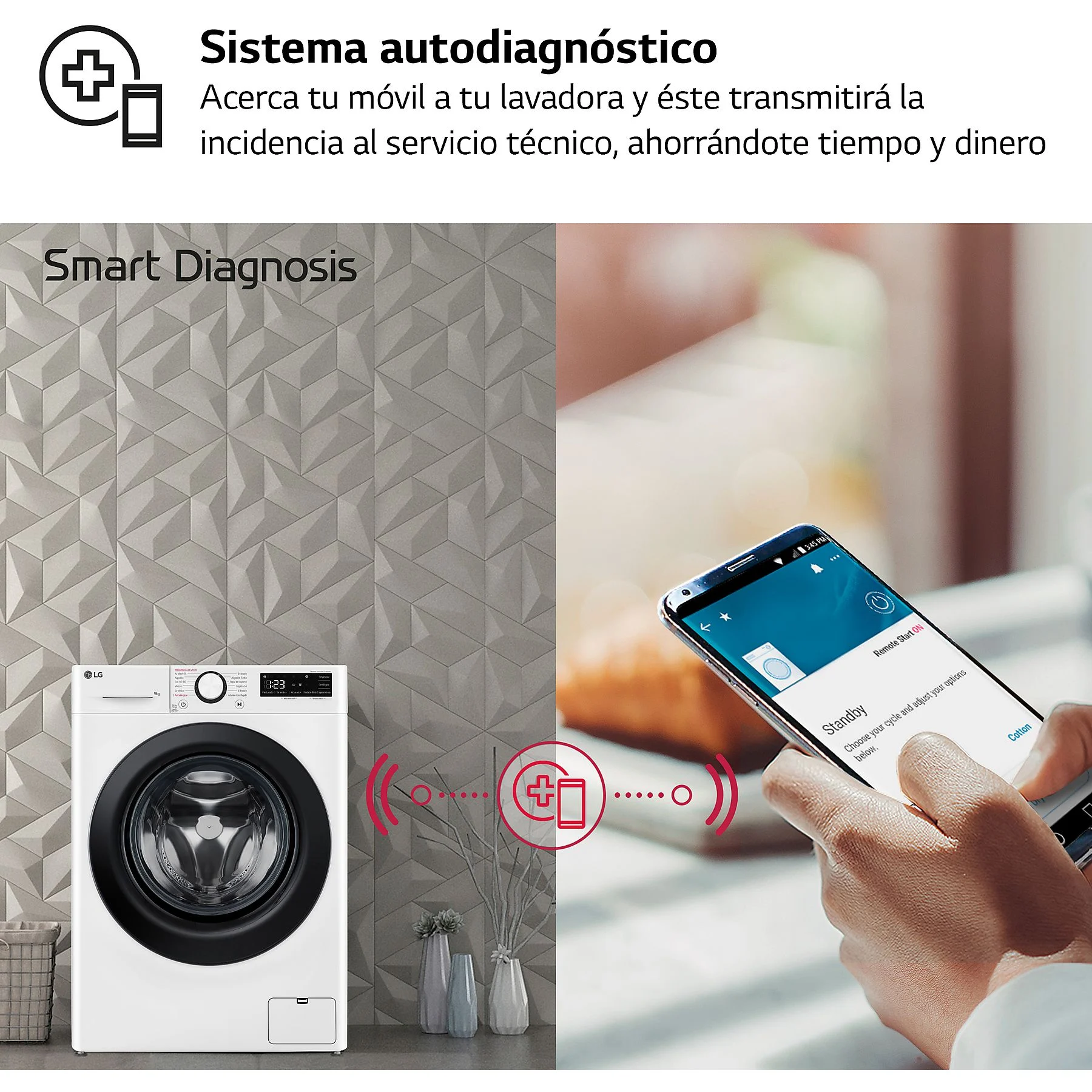 • Smart Diagnosis: Olvida las esperas técnicas innecesarias. Acerca tu móvil a la lavadora y el sistema de autodiagnóstico transmitirá cualquier incidencia directamente al servicio técnico, ahorrándote tiempo y dinero.
