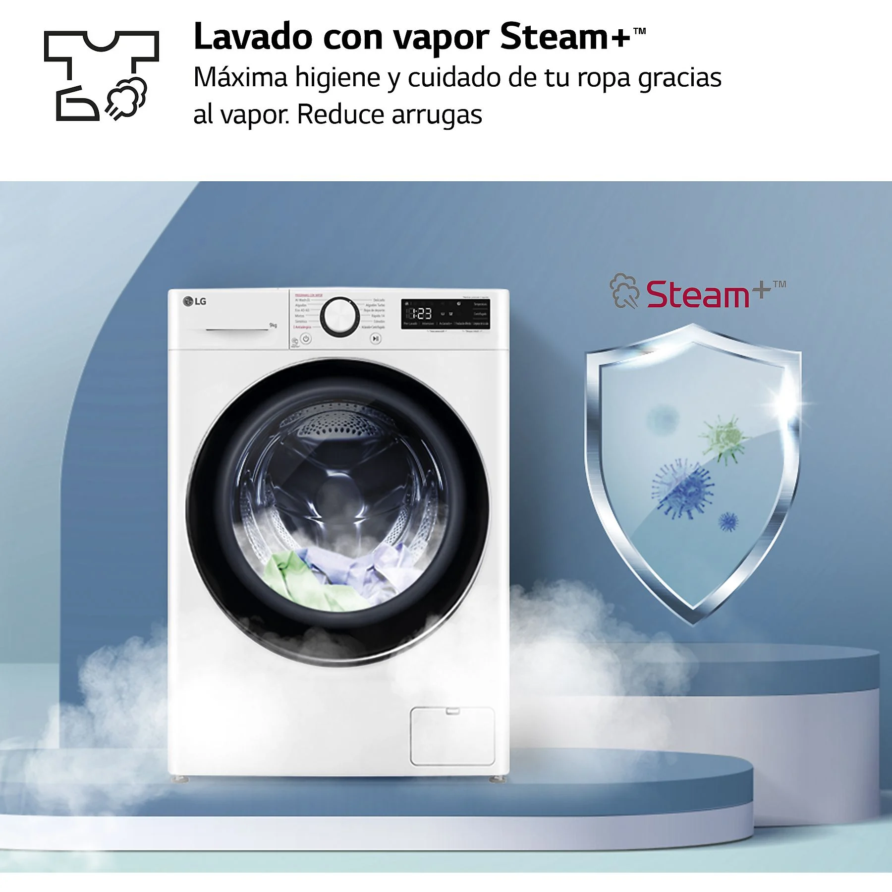 Lavadora LG Serie 500 F4WR5009A6W | 9 kg, 1400 rpm, Motor AI Direct Drive™, Clase A-10%, Vapor Steam™ – Blanco