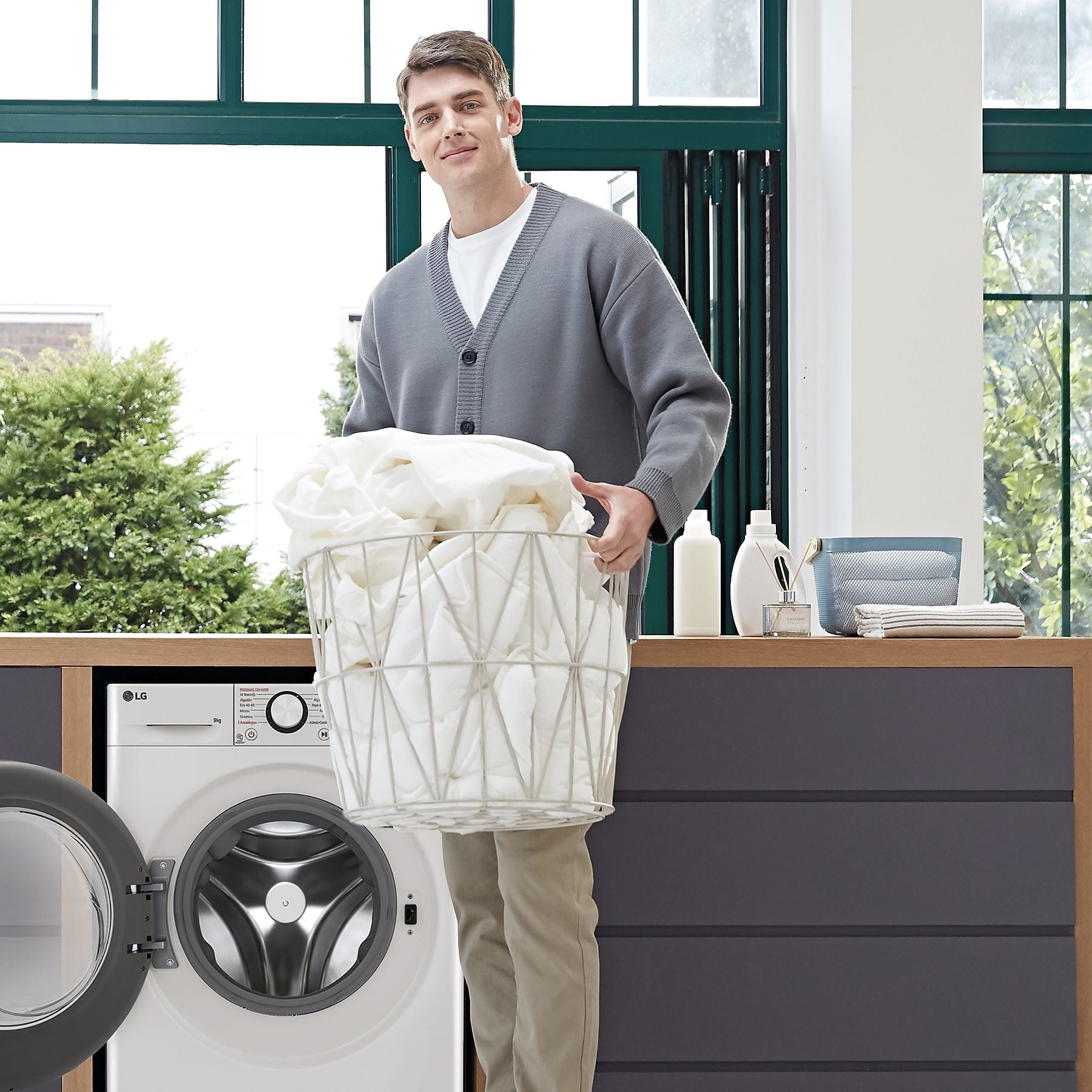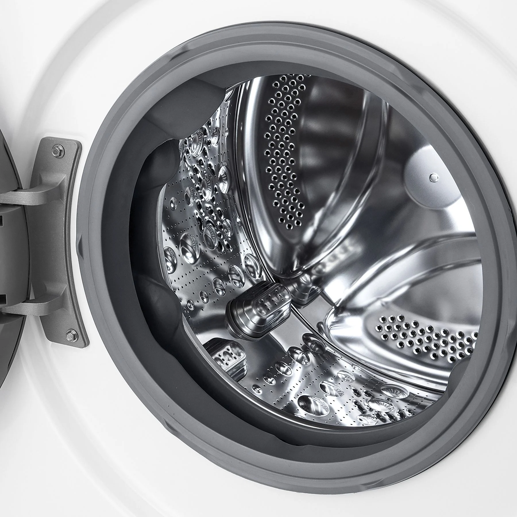 La LG F4WR5009A6W de la Serie 500 es una experta en el cuidado textil y la eficiencia energética. Con una capacidad de 9 kg, está diseñada para ofrecer una limpieza profunda mientras minimiza el consumo eléctrico, siendo un 10% más eficiente que la máxima categoría A.