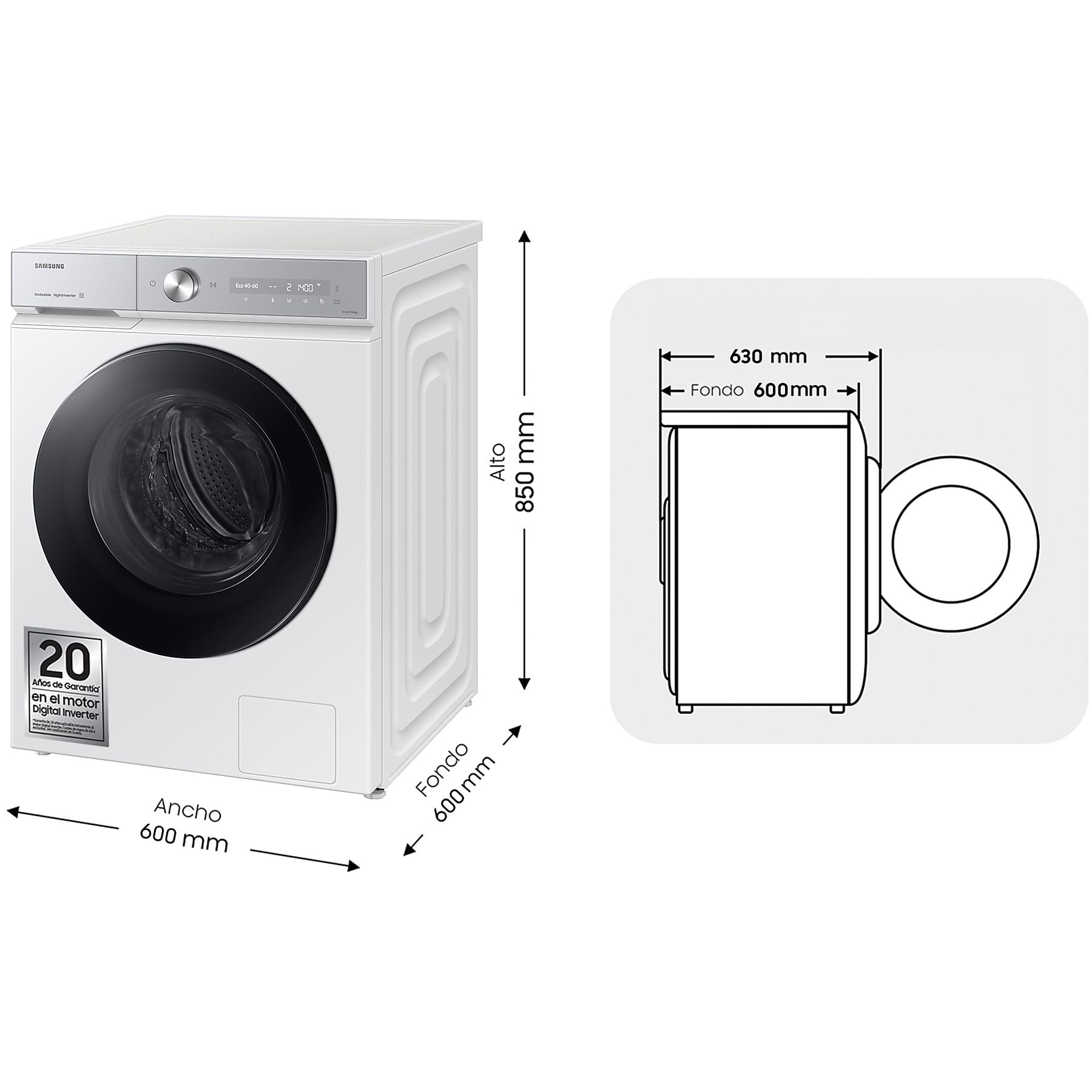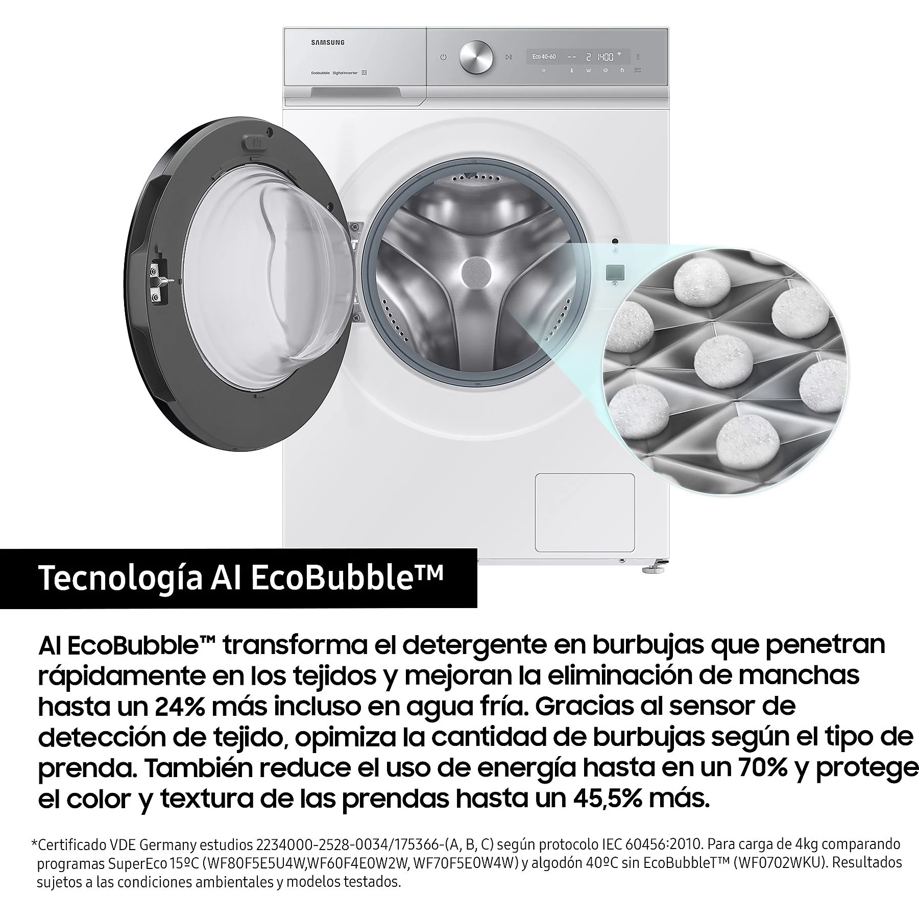 Lavadora Samsung Bespoke AI WW11DB8B95GHU3 | 11 kg, 1400 rpm, Clase A-40%, Autodosificación, QuickDrive™ – Blanco