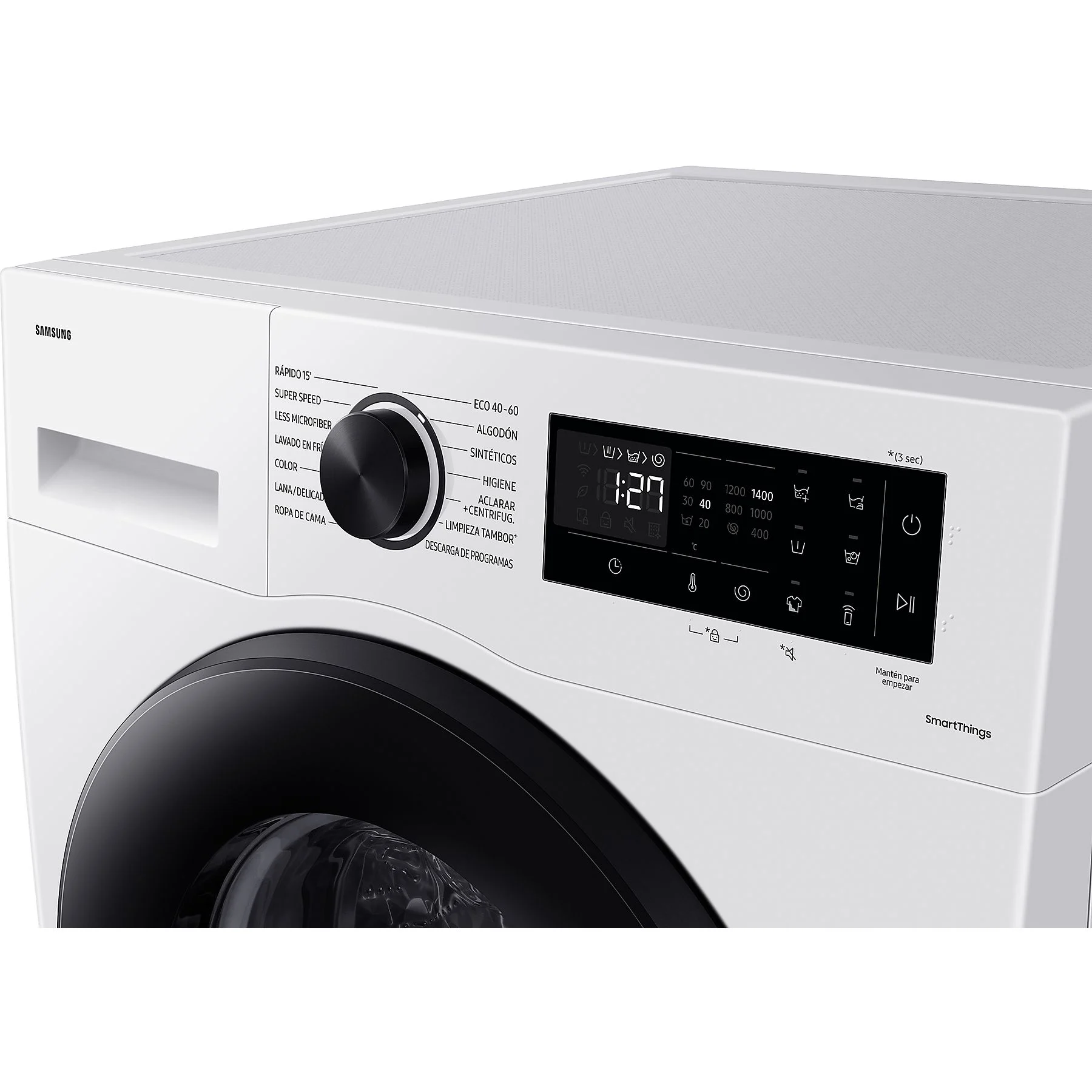 Lavadora inteligente de gran capacidad (11 kg) con eficiencia Clase A y tecnología AI EcoBubble™ para un lavado eficaz incluso en agua fría. Incluye conectividad Wi-Fi con SmartThings, programa Super Speed de 39 min y ciclo de vapor higienizante.