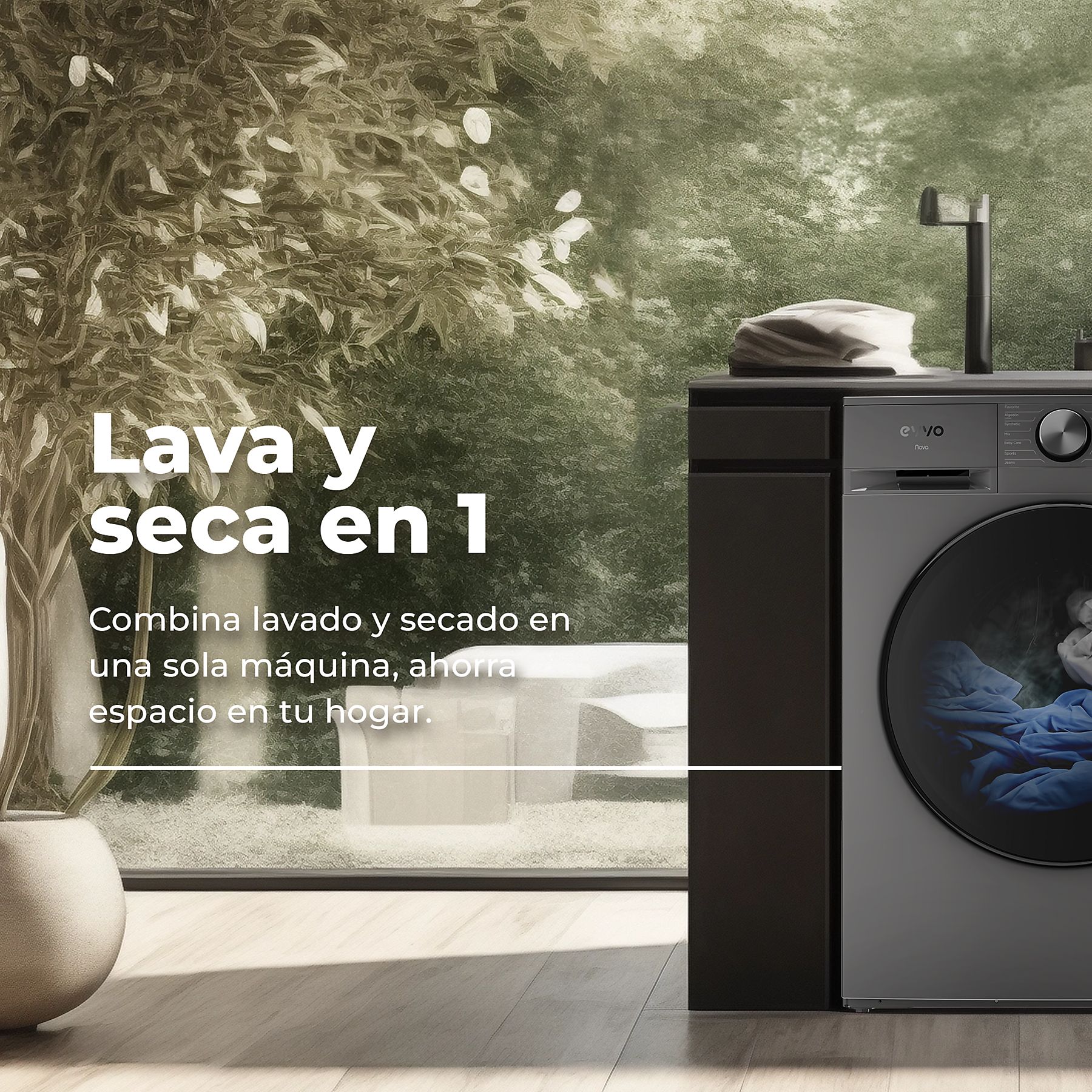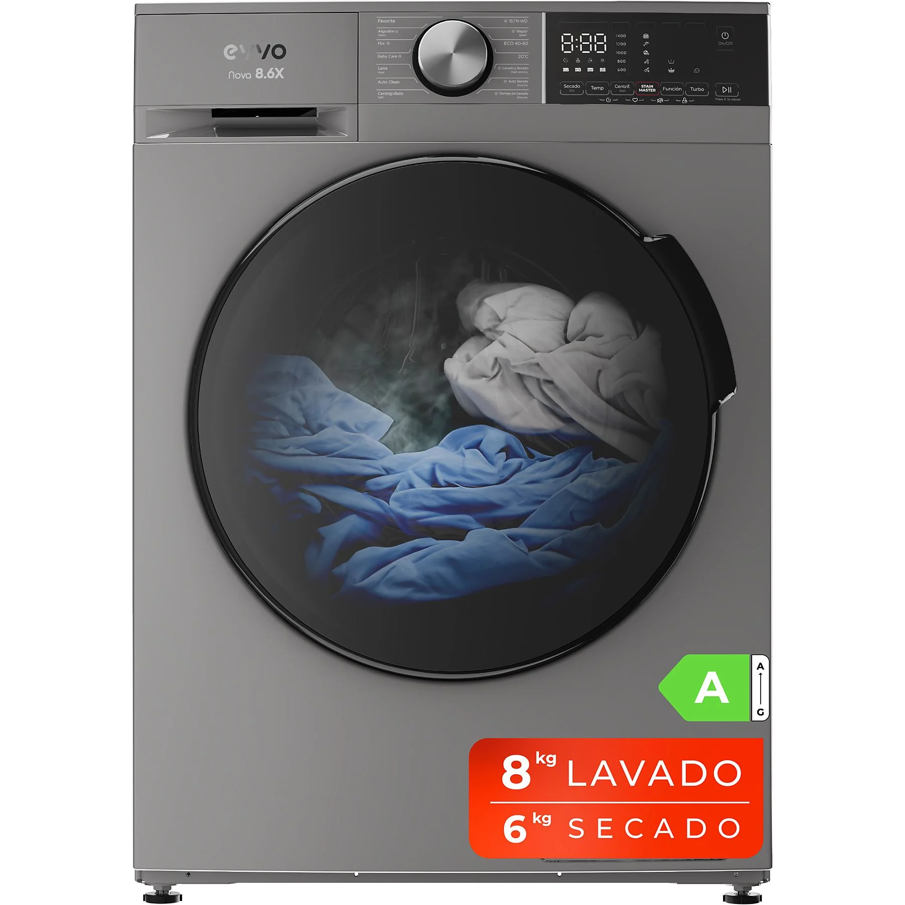 Lavasecadora EVVO Nova 8/6X | 8 kg / 6 kg, 1350 rpm, Motor Inverter E-Drive, Clase A, Fondo Reducido (48 cm) – Inox