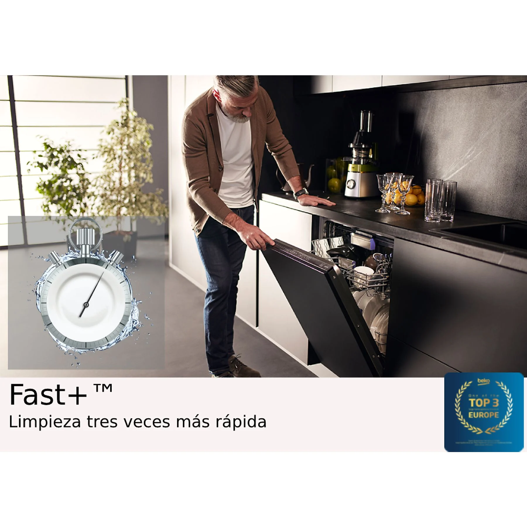 Fast+: Cuando el tiempo apremia, esta función acelera el ciclo de lavado hasta 3 veces, manteniendo un rendimiento óptimo de limpieza y abrillantado.