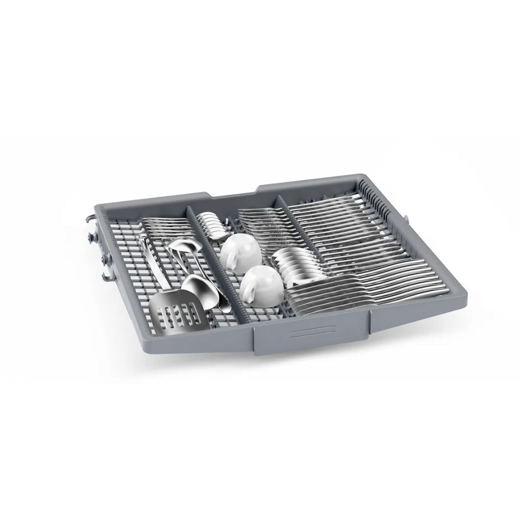 Tercera Bandeja VarioDrawer: Espacio dedicado para cubiertos y utensilios pequeños, liberando la cesta inferior para platos y fuentes, permitiendo una capacidad real de 14 servicios.