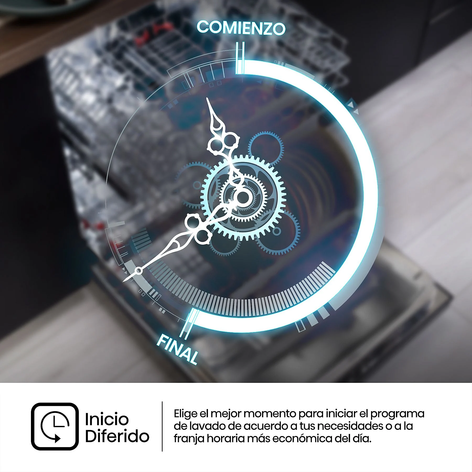 Programación Flexible: Con el inicio diferido, puedes elegir el momento exacto en el que deseas que comience el lavado, ideal para aprovechar las horas con tarifas de luz más económicas.