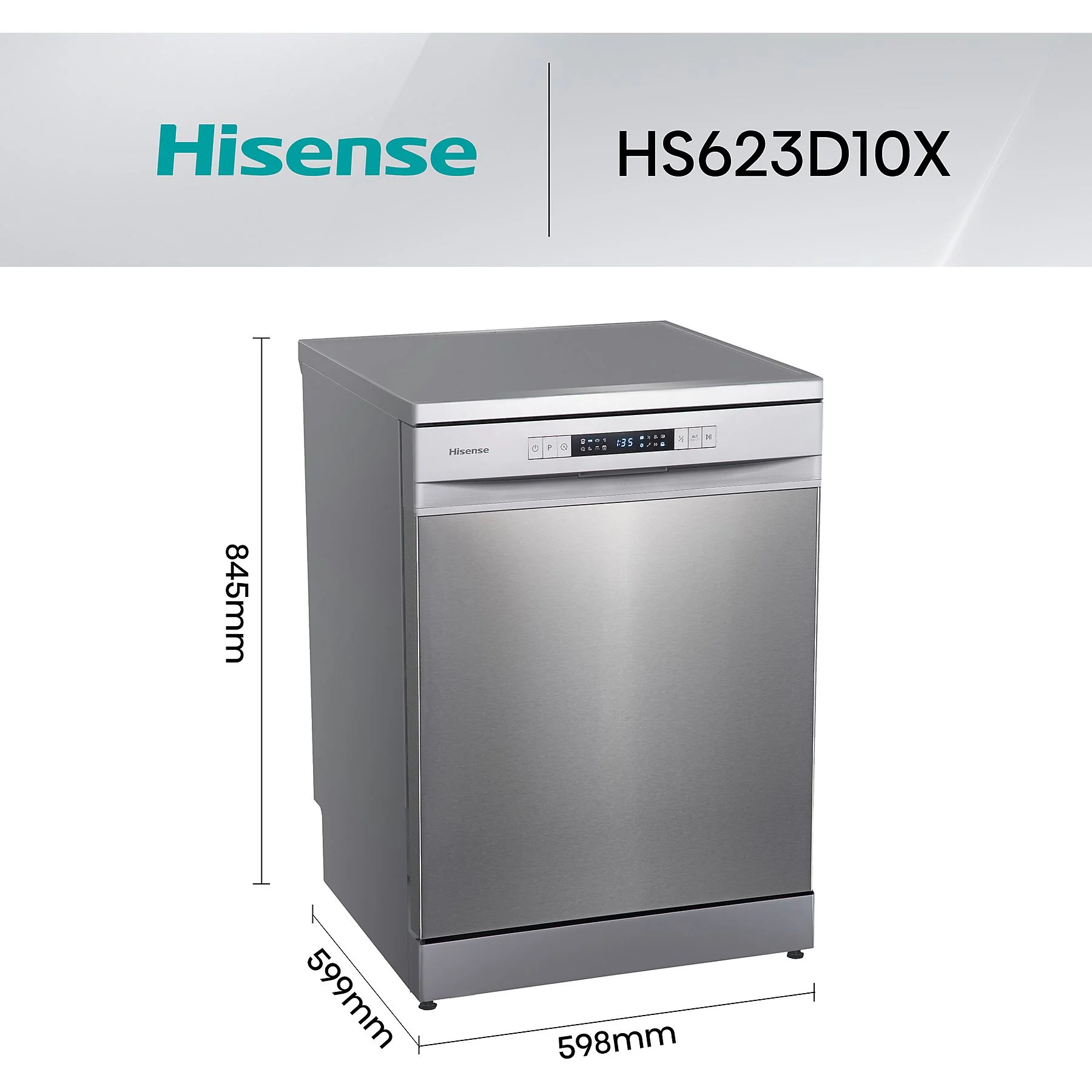 Lavavajillas Hisense HS623D10X | 14 servicios, 60 cm, Tercera bandeja, Secado Automático, Clase D – Inox