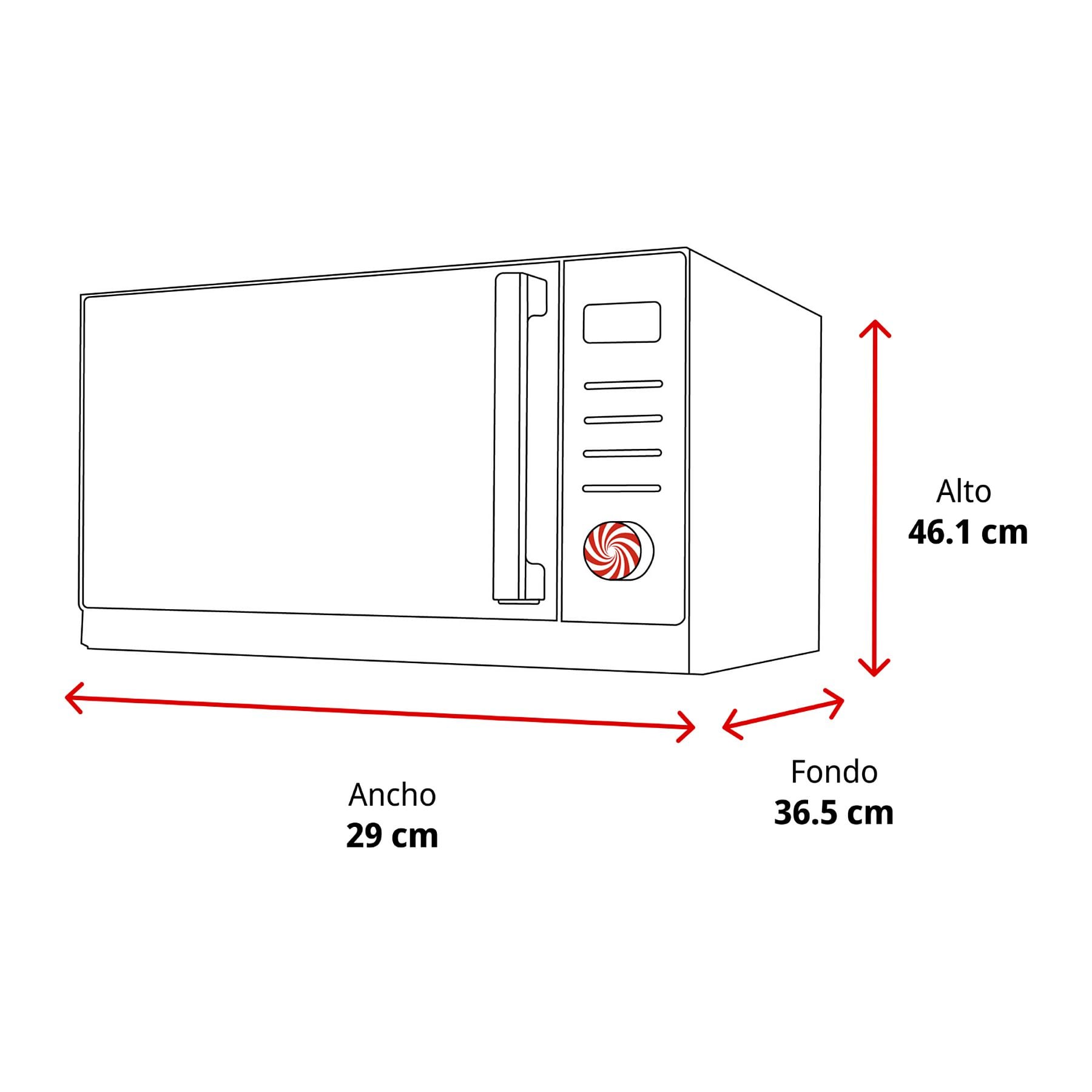 Dimensiones: 29 cm (Alto) x 46.1 cm (Ancho) x 36.5 cm (Fondo).