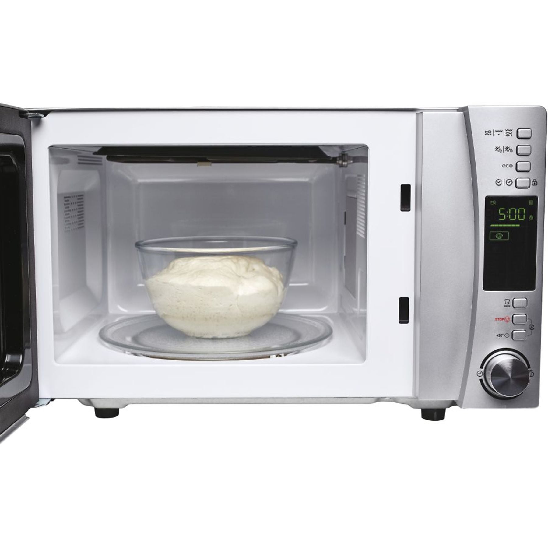 La comodidad y la seguridad son pilares de este diseño. Cuenta con un display digital intuitivo, función de inicio diferido para programar tus comidas y un modo Eco que apaga el display cuando no está en uso. Además, incluye detalles premium como la posibilidad de eliminar el sonido de los avisos y un bloqueo infantil, convirtiéndolo en un aliado seguro y funcional para el día a día en hogares dinámicos.