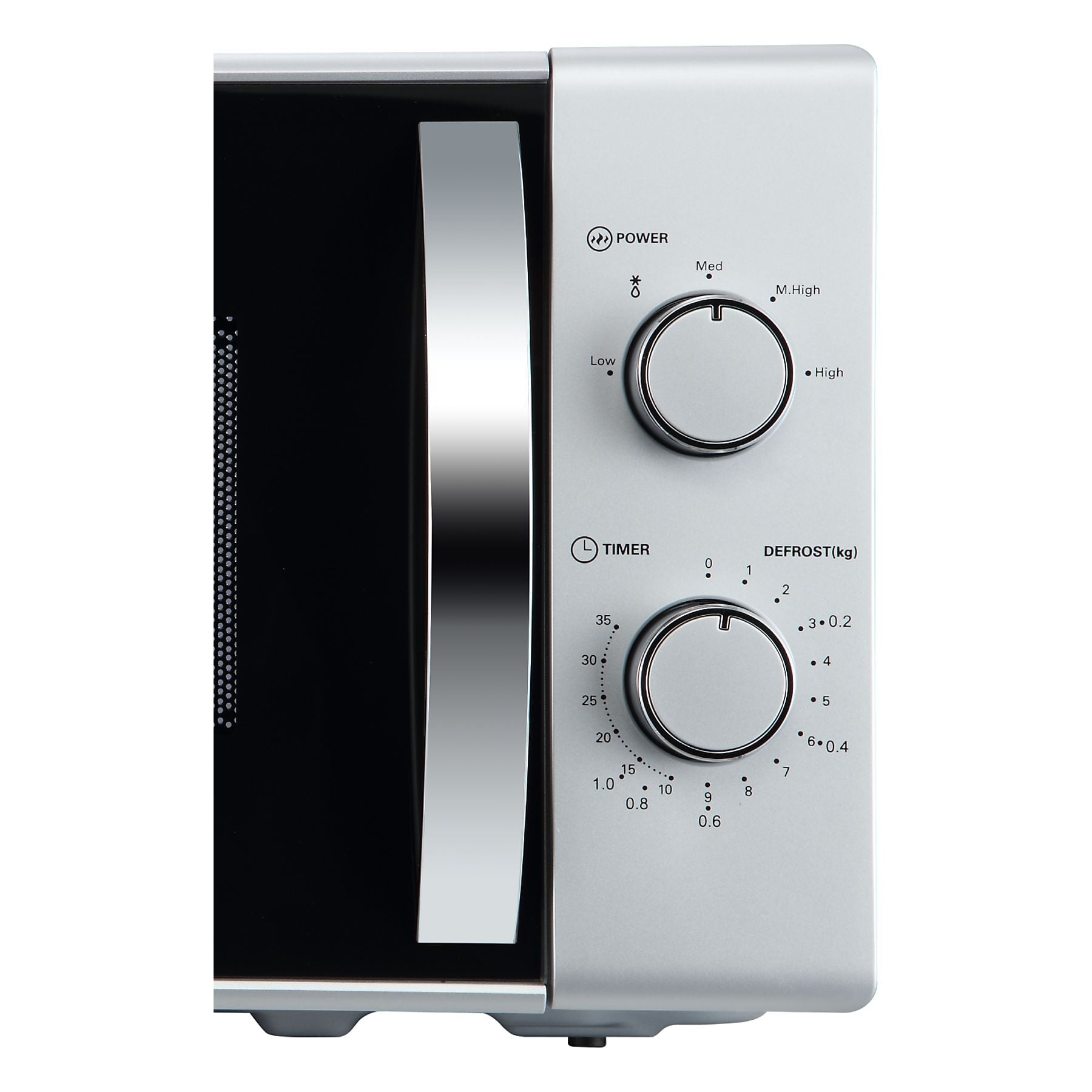 Microondas de libre instalación con 20 litros de capacidad y diseño compacto en color plata. Ofrece un manejo intuitivo mediante mandos giratorios, 5 niveles de potencia y función de descongelación.