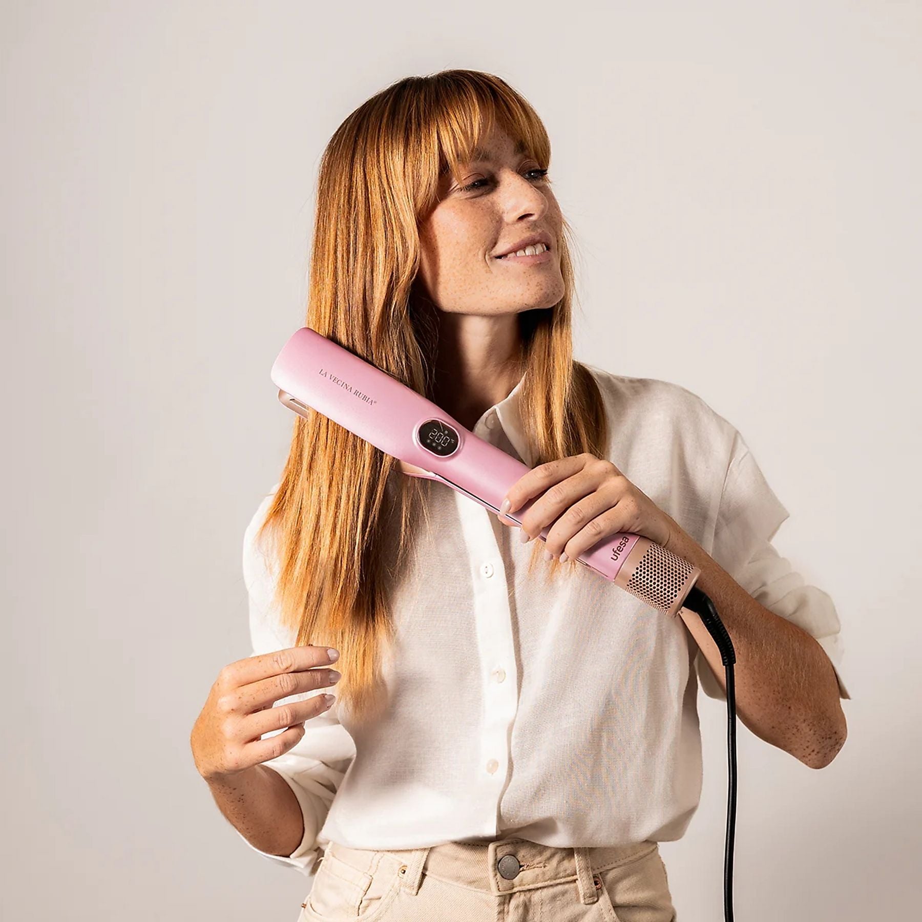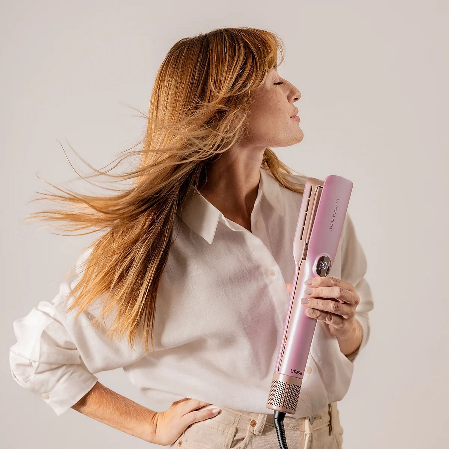 Plancha Secador 3 en 1 Ufesa La Vecina Rubia | Motor Digital 110.000 rpm, Revestimiento Cerámico, Rosa