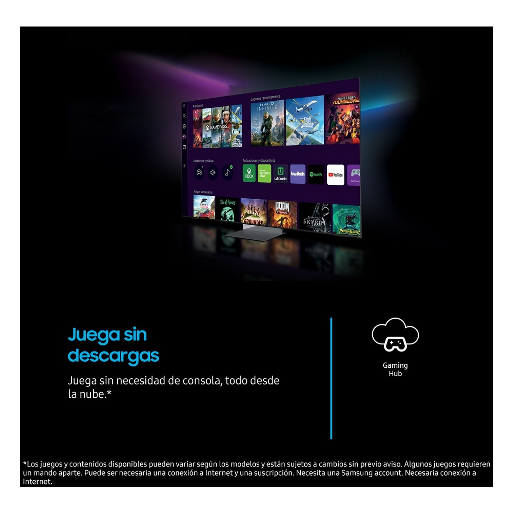 Smart TV: Sistema Tizen con acceso a apps, SmartThings y Samsung TV Plus.