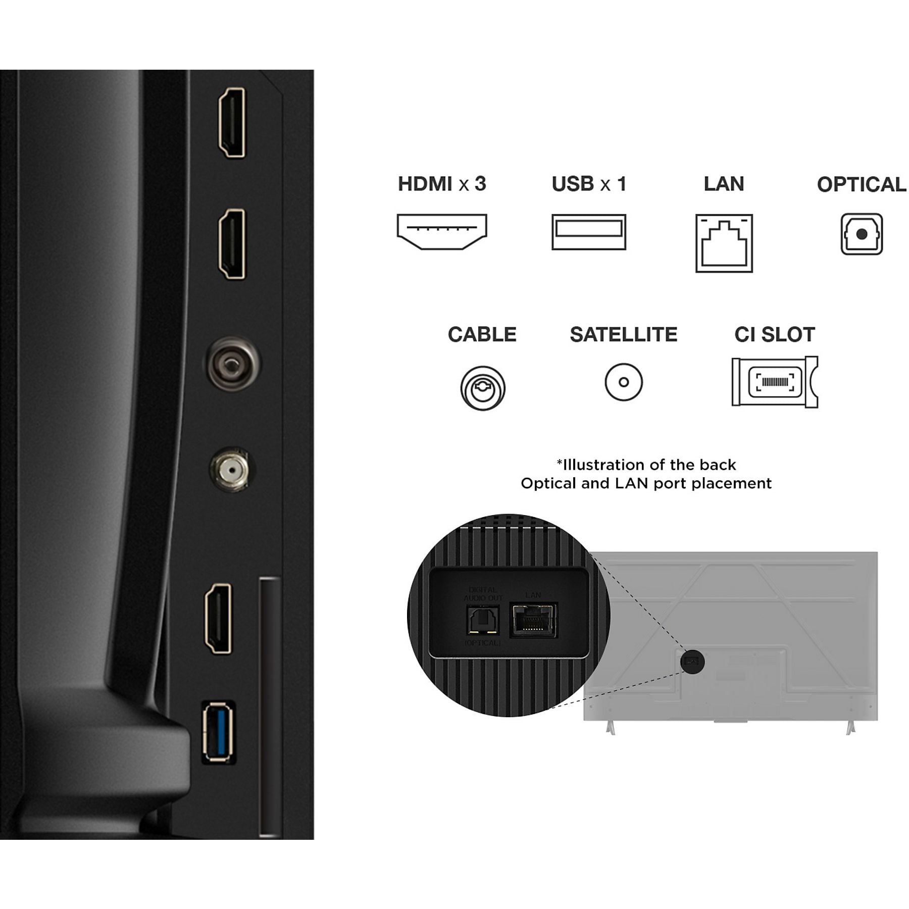 Conectividad: 3x HDMI, 2x USB, Wi-Fi integrado y Bluetooth.