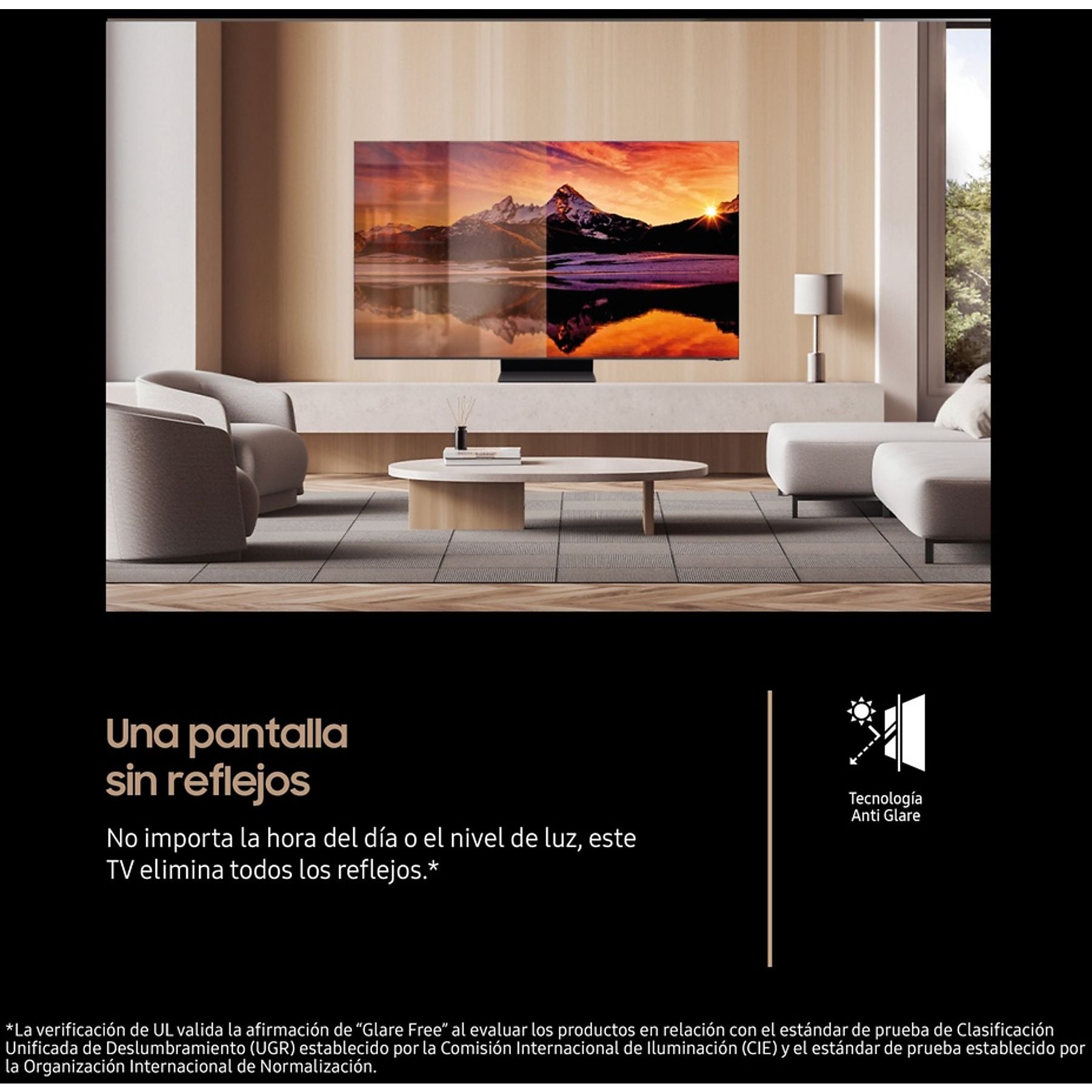 • Smart TV: Tizen OS con SmartThings, Click to Search, Multi-View y Generative Wallpaper.
