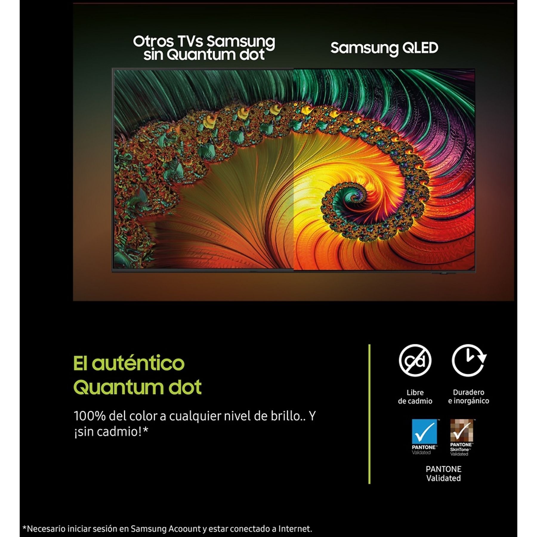 Televisor QLED de 50 pulgadas con tecnología Quantum dot para el 100% de volumen de color y procesador con inteligencia artificial. Ofrece escalado 4K avanzado, seguridad Samsung Knox y una experiencia Smart TV completa con Tizen.